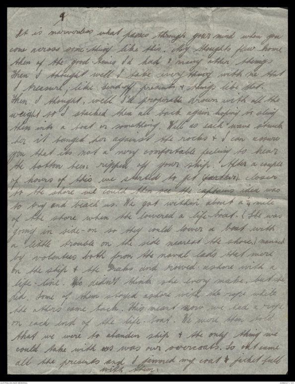 that we were to abandon ship & the only thing we