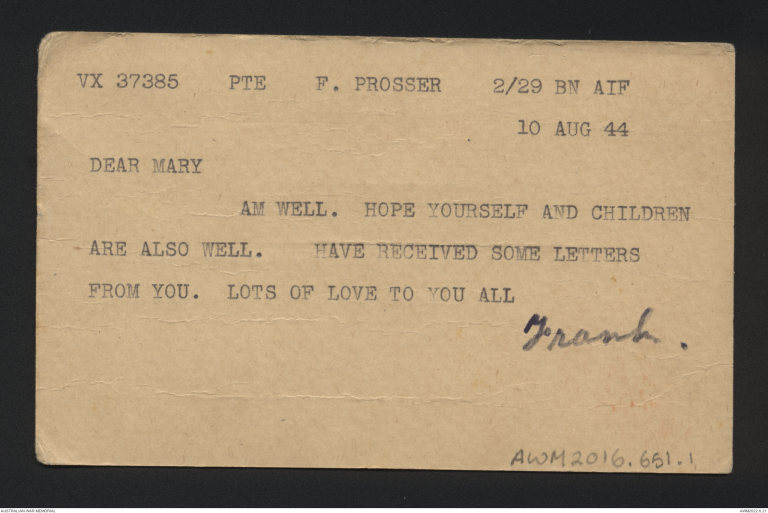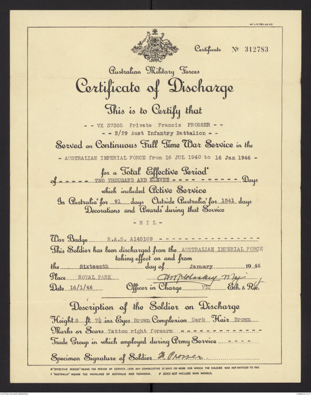 VX 37385 PTE F. PROSSER 2/29 BN AIF