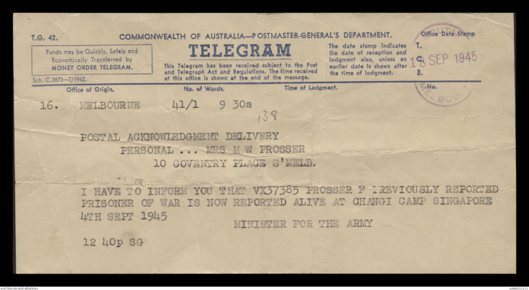 PRISONER OF WAR IS NOW REPORTED ALIVE AT CHANGI CAMP SINGAPORE
