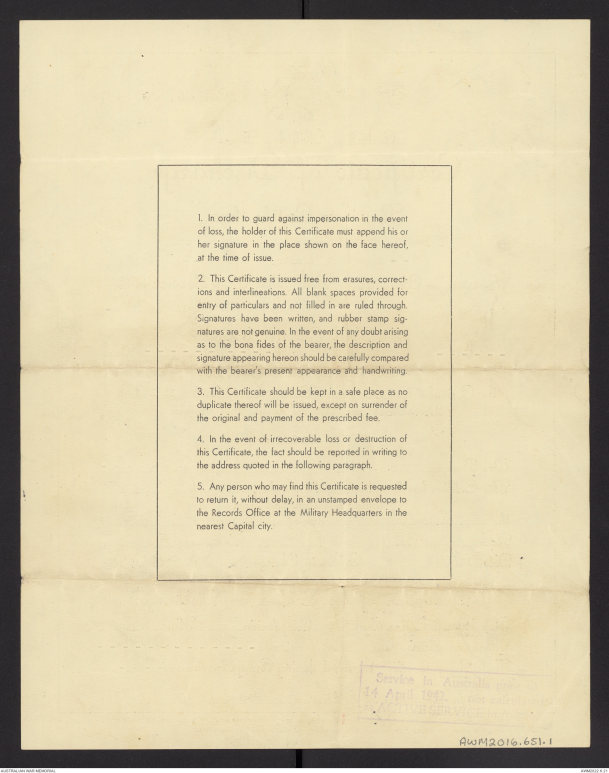 This Soldier has been discharged from the AUSTRALIAN IMPERIAL FORCE