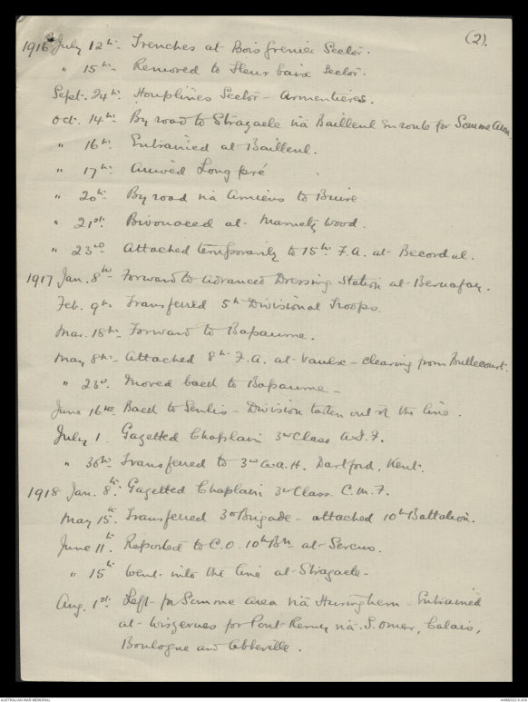 Jan. 8th Gazetted Chaplain 3rd Class. C.M.F.