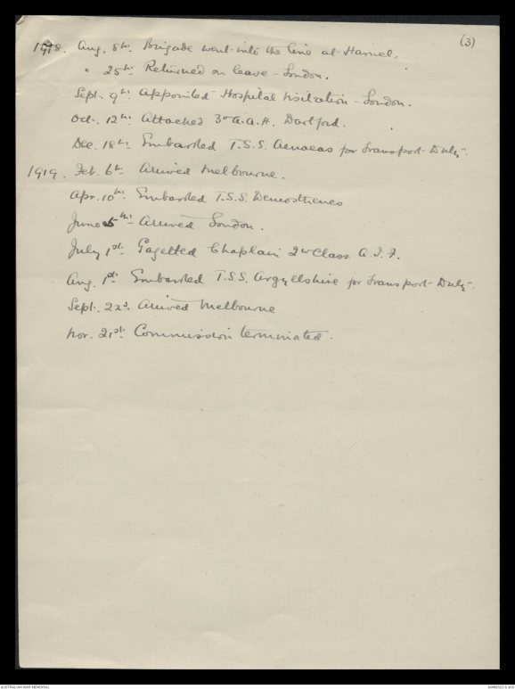 July 1 Gazetted Chaplain 3rd Class A.I.F.