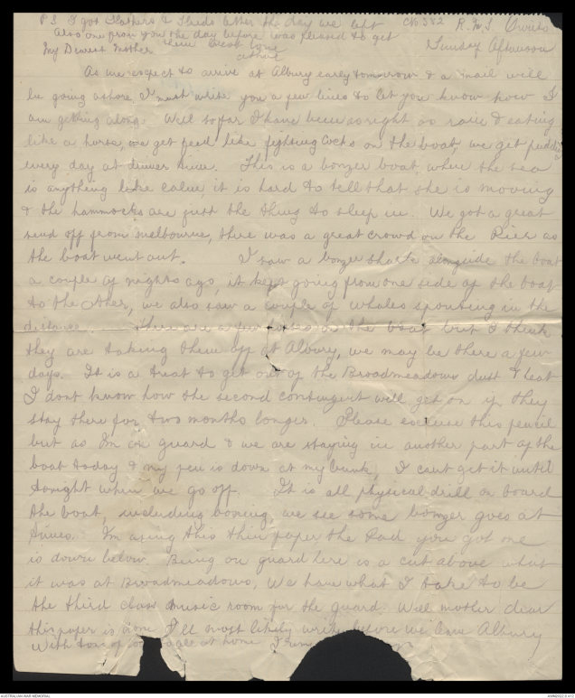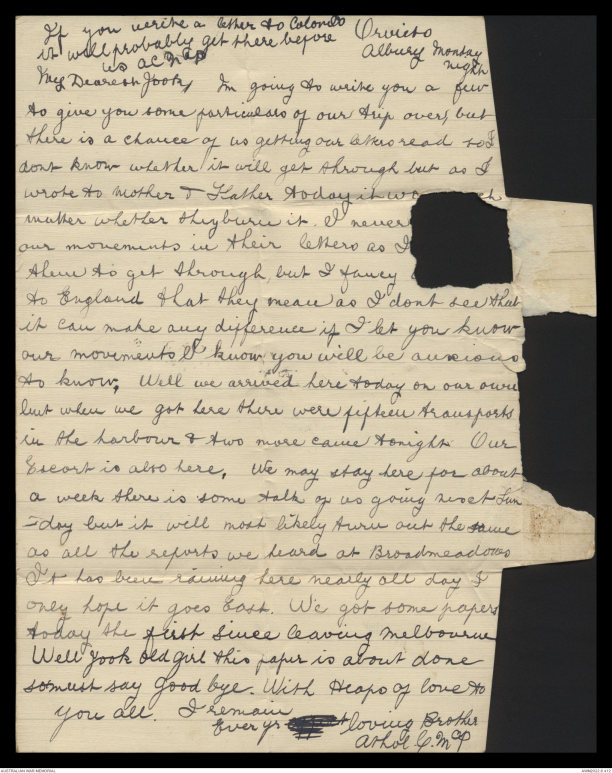 As we expect to arrive at Albury early tomorrow & a mail will