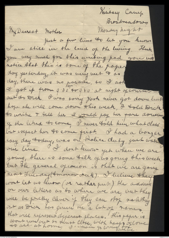 Monday wrote home