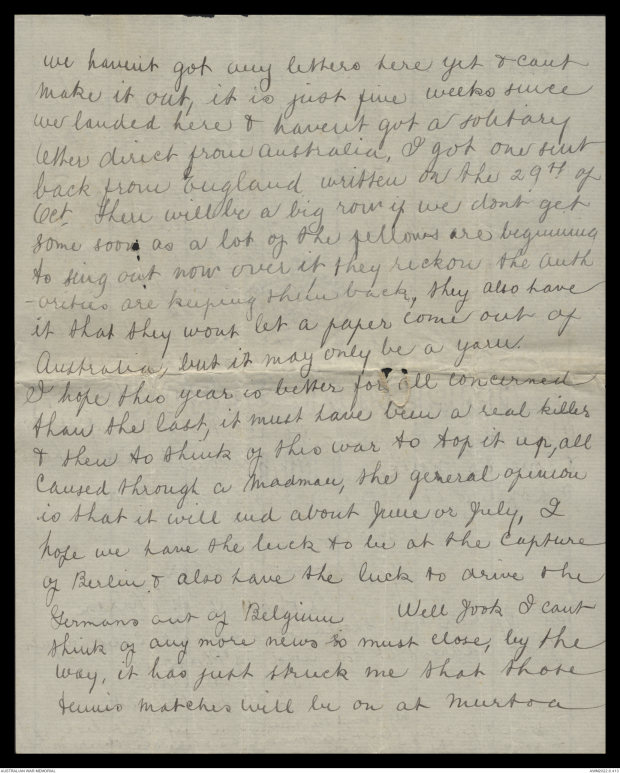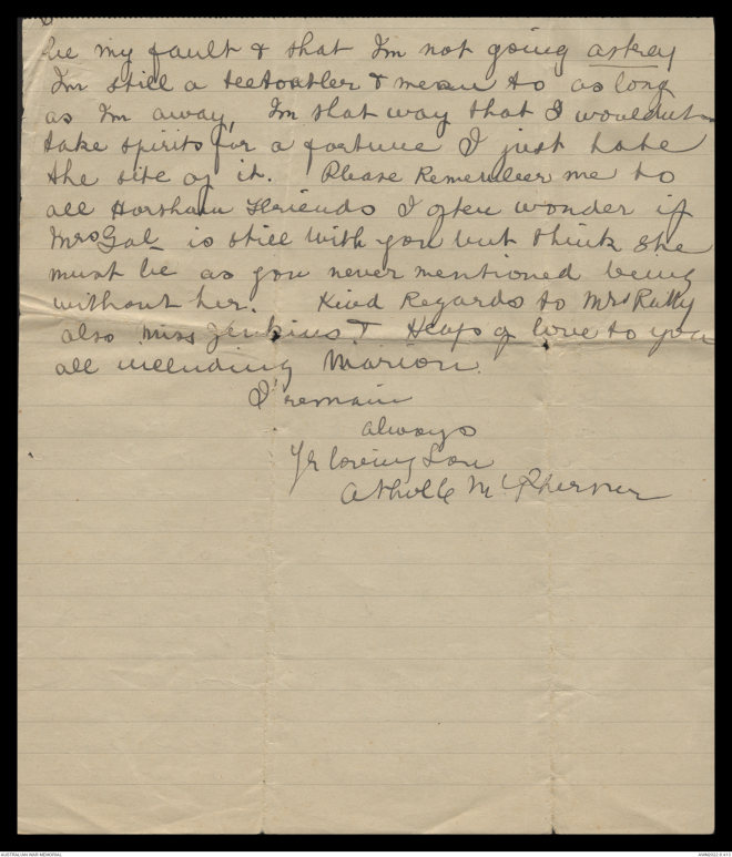 Letters of Athol Cluny McPherson, January to March 1915 - Part 1
