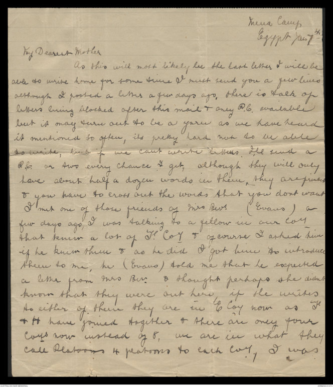 a letter from Mrs Bev. & thought perhaps she didnt