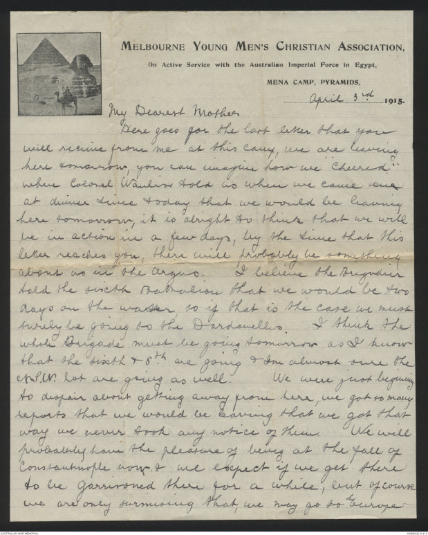 On Active Service with the Australian Imperial Force in Egypt.