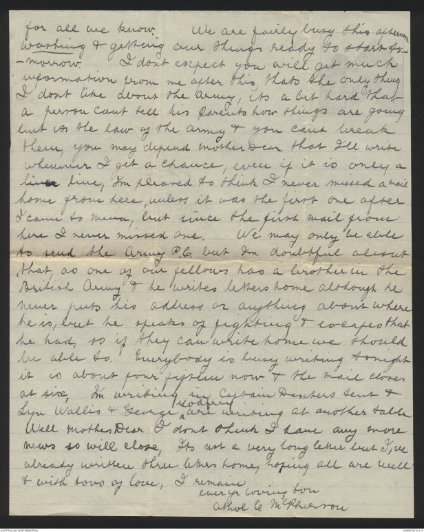 Letters of Athol Cluny McPherson, April - August 1915 - Part 5