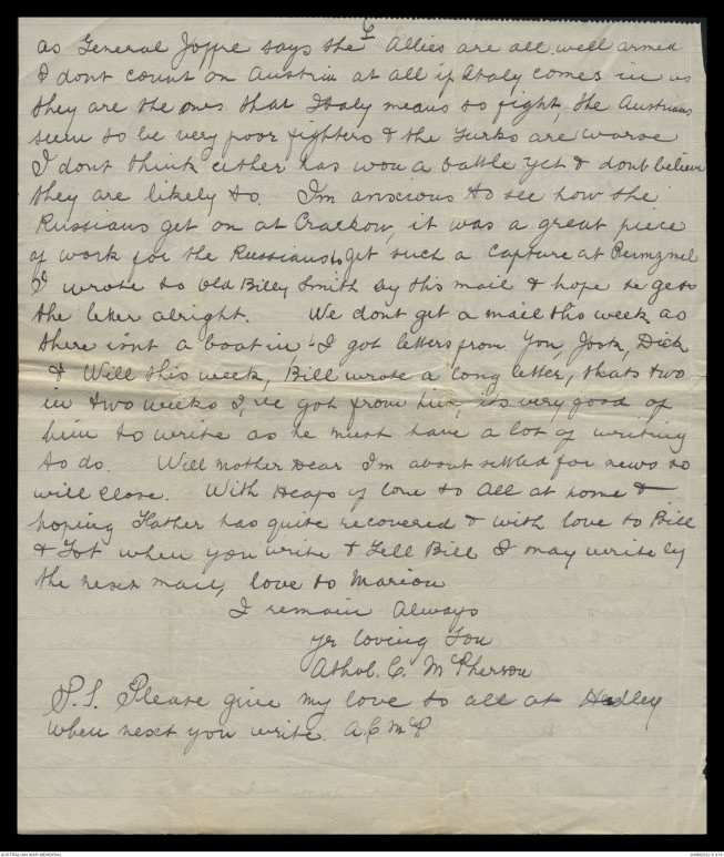 Letters of Athol Cluny McPherson, April - August 1915 - Part 8