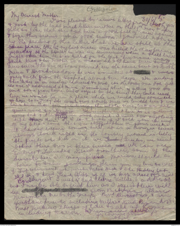 Letters of Athol Cluny McPherson, April - August 1915 - Part 9