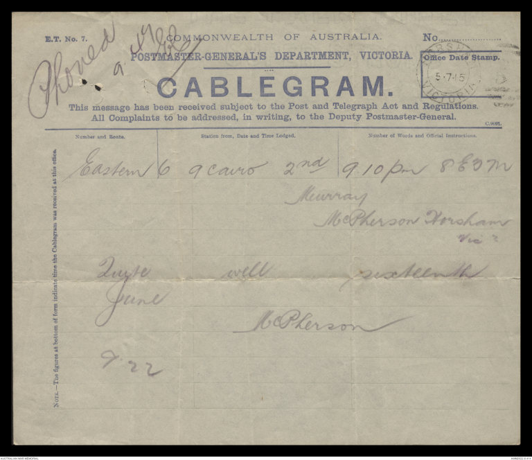 Letters of Athol Cluny McPherson, April - August 1915 - Part 10