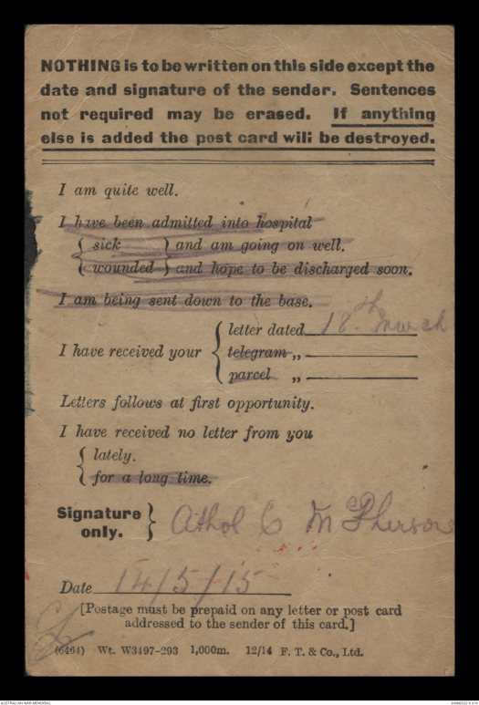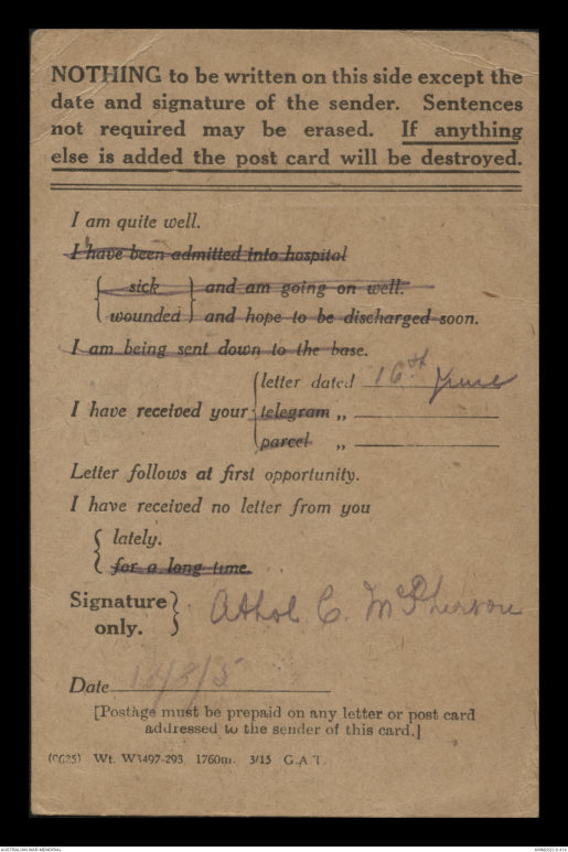 Letters of Athol Cluny McPherson, April - August 1915 - Part 11