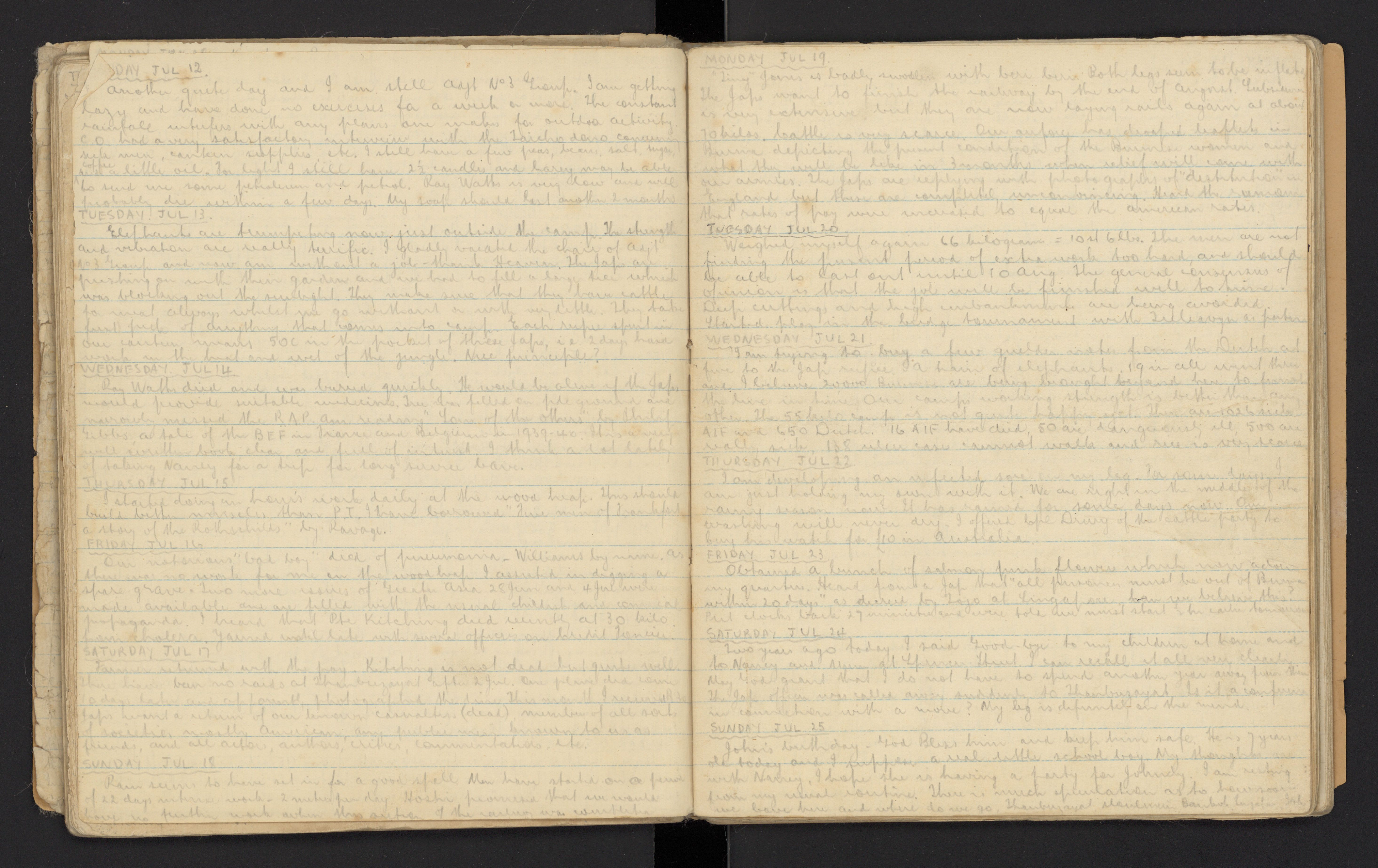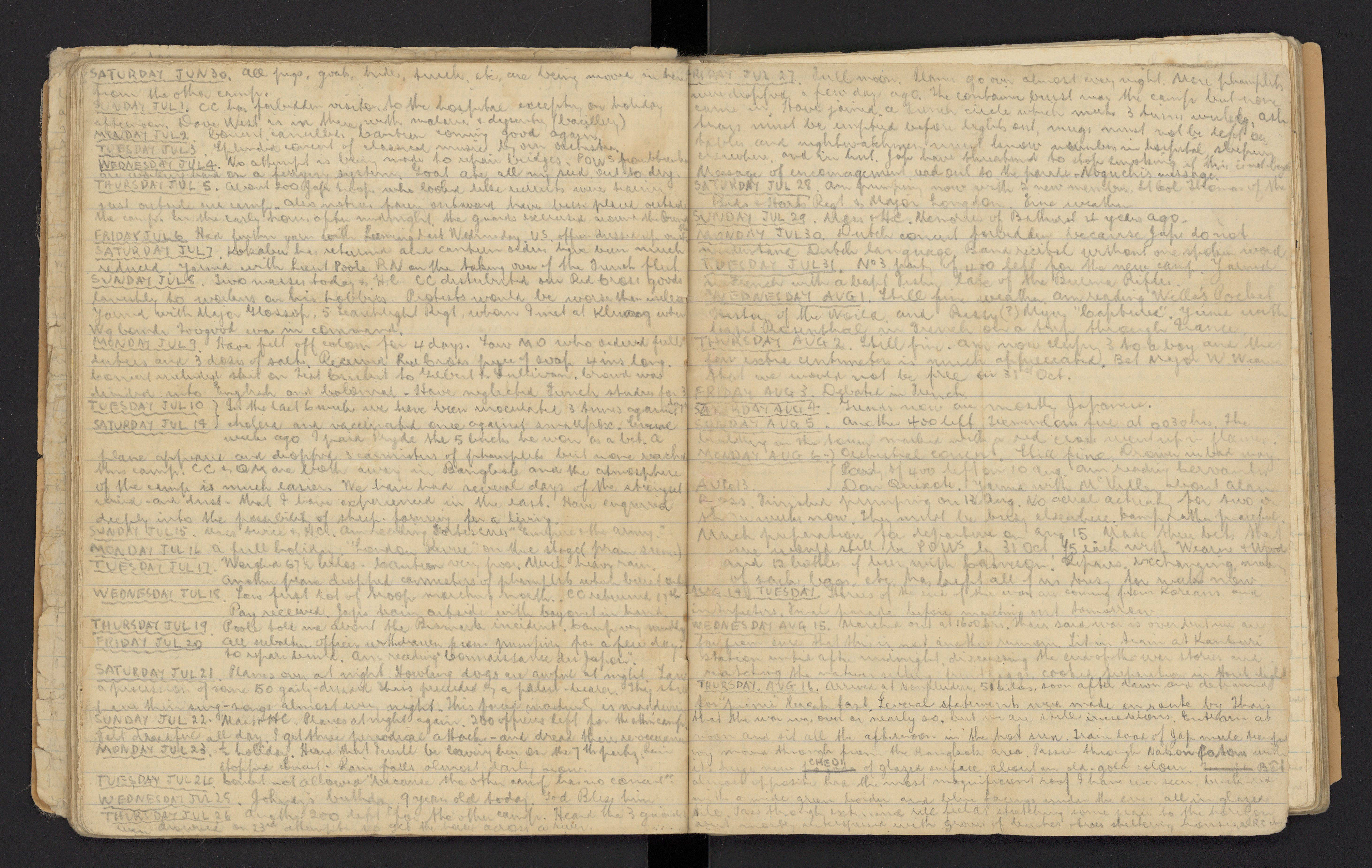 THURSDAY JUL 19. Poole told me about the Bismark incident. Camp very muddy.