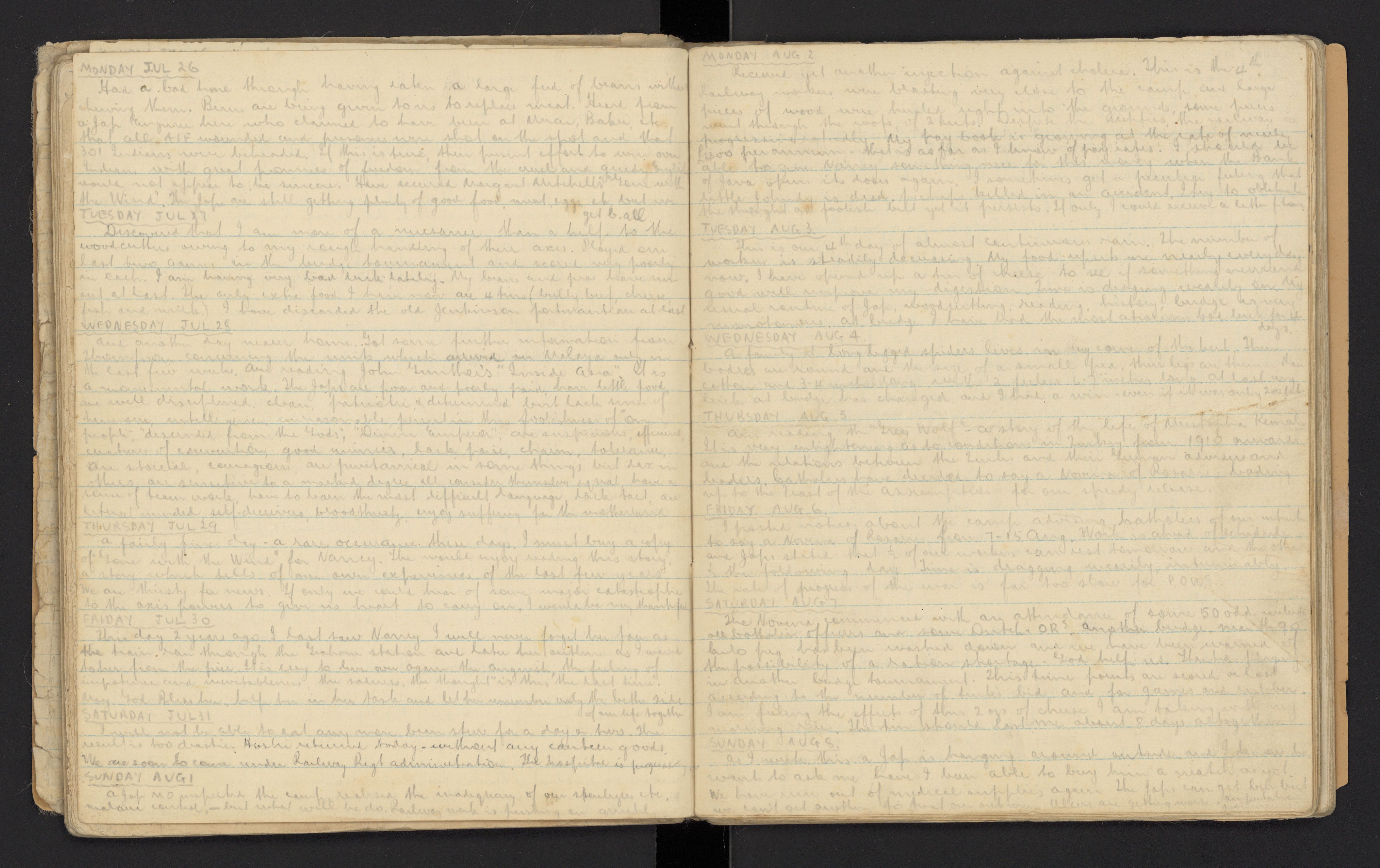 WEDNESDAY AUG 1. Still fine weather. Am reading Welle's Pocket