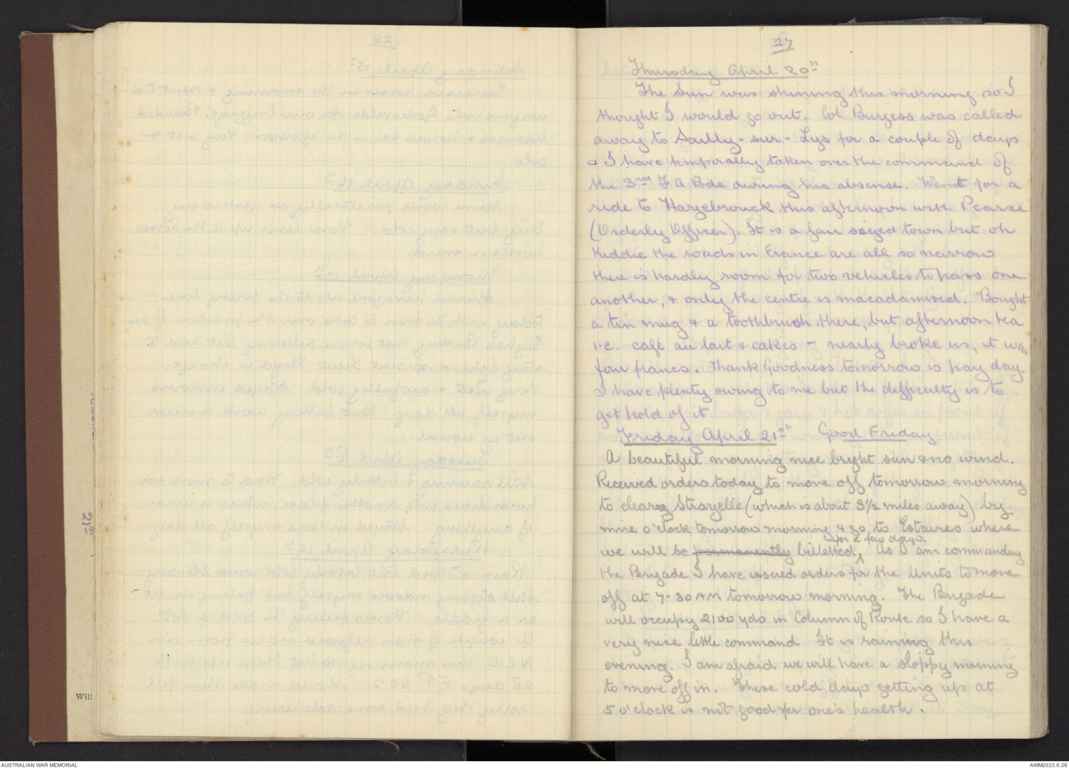 we will be permanently billetted ^for a few days. As I am commanding