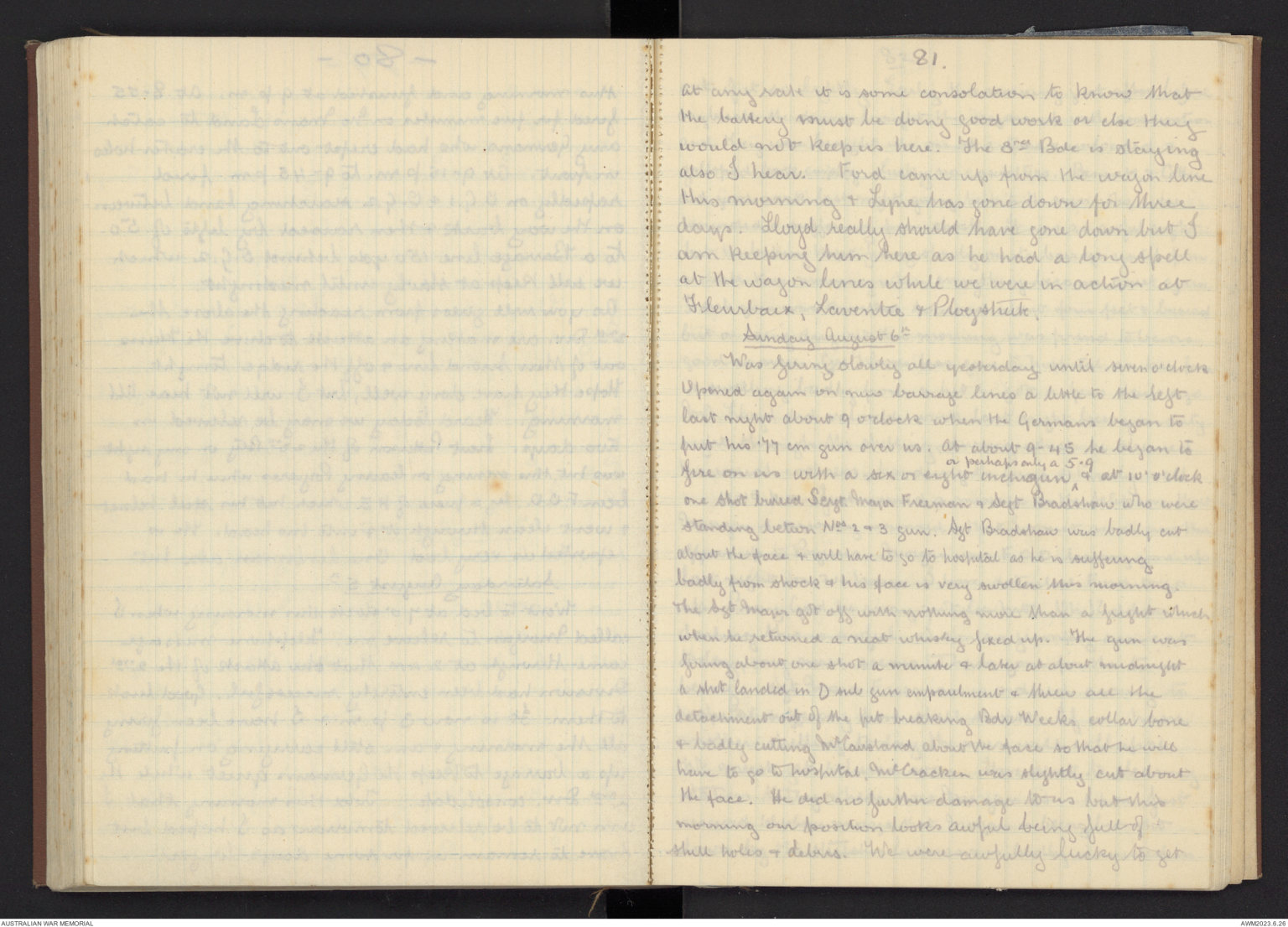 standing between Nos. 2 & 3 gun. Sgt Bradshaw was badly cut