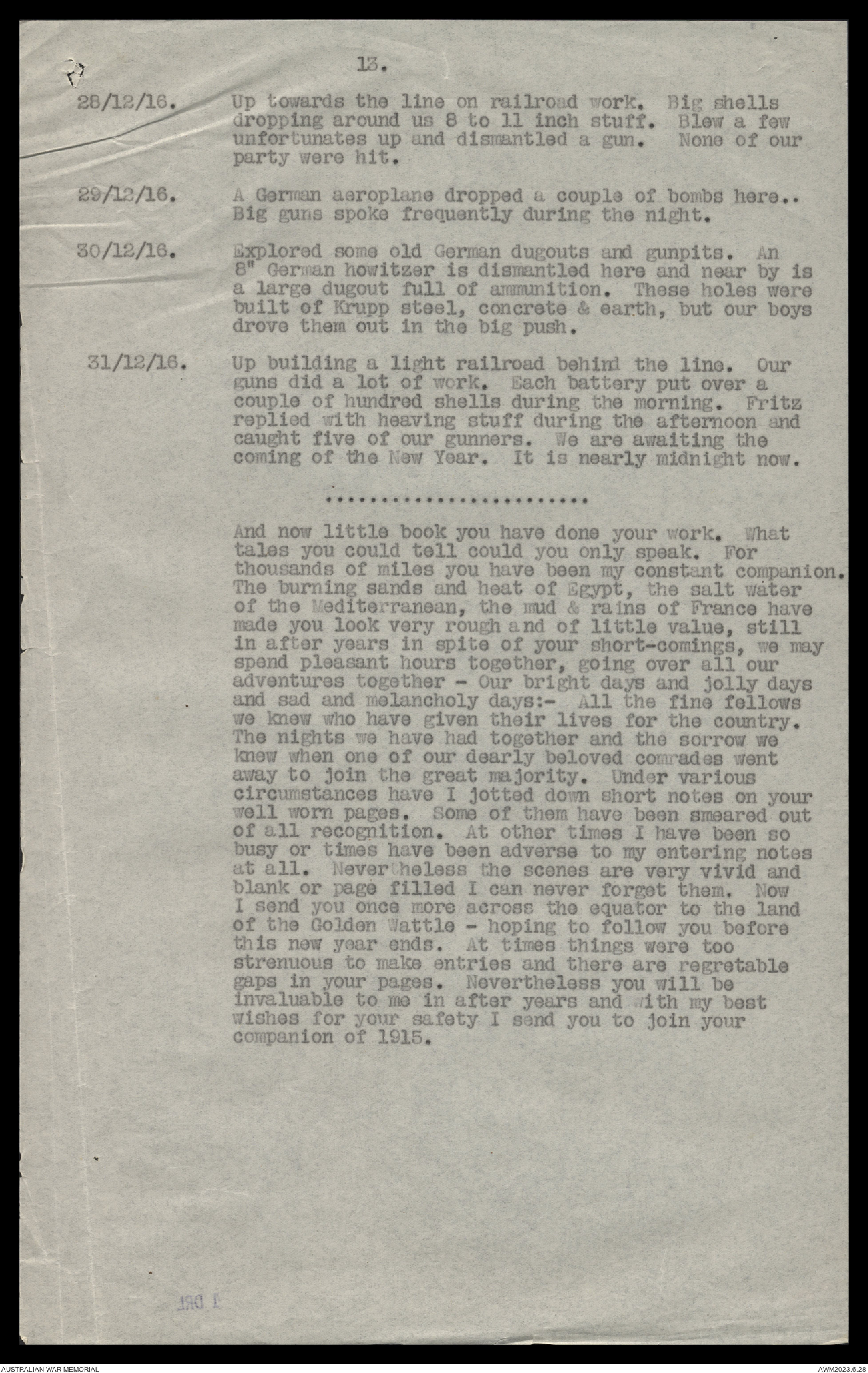 29/12/16. A German aeroplane dropped a couple of bombs here..