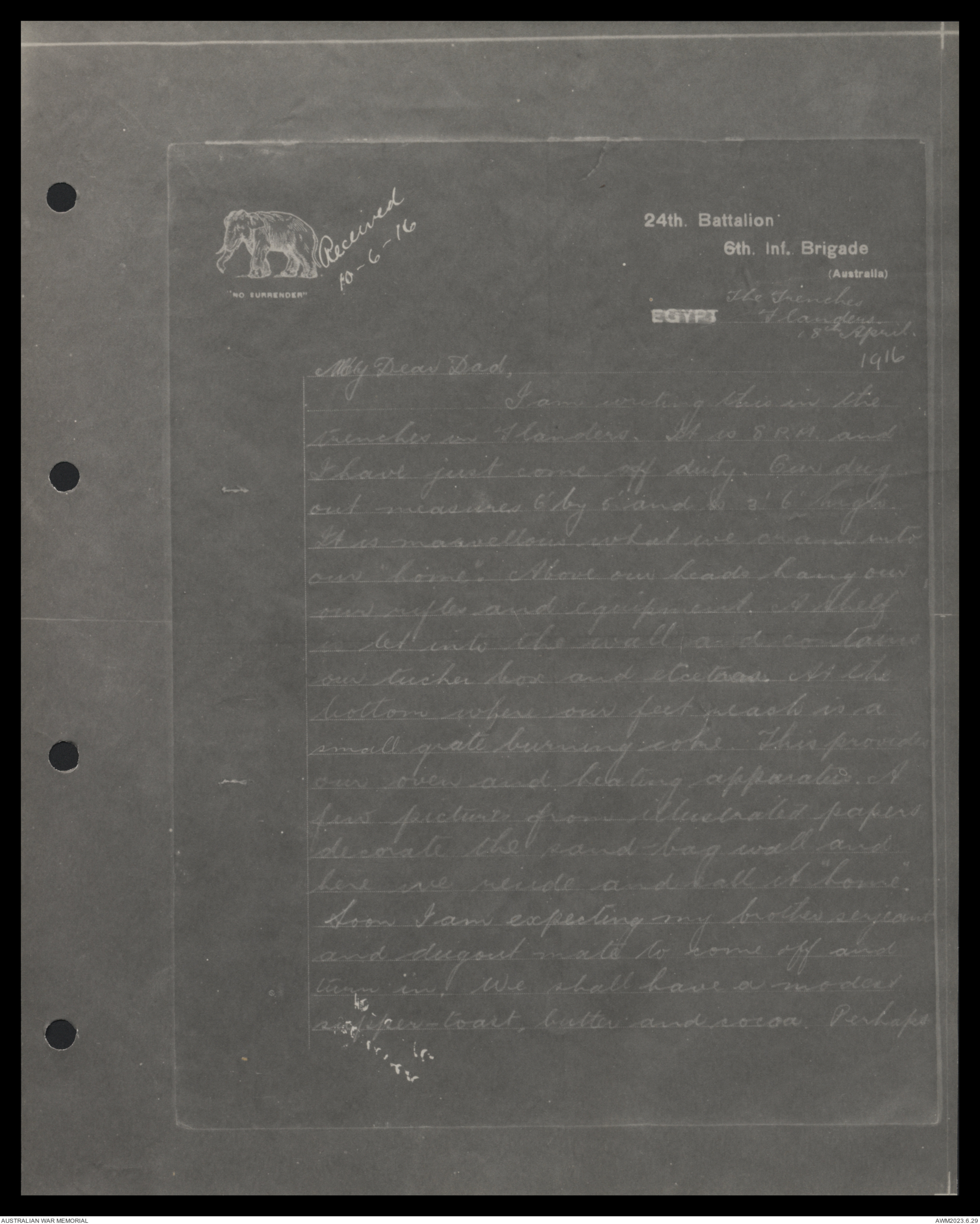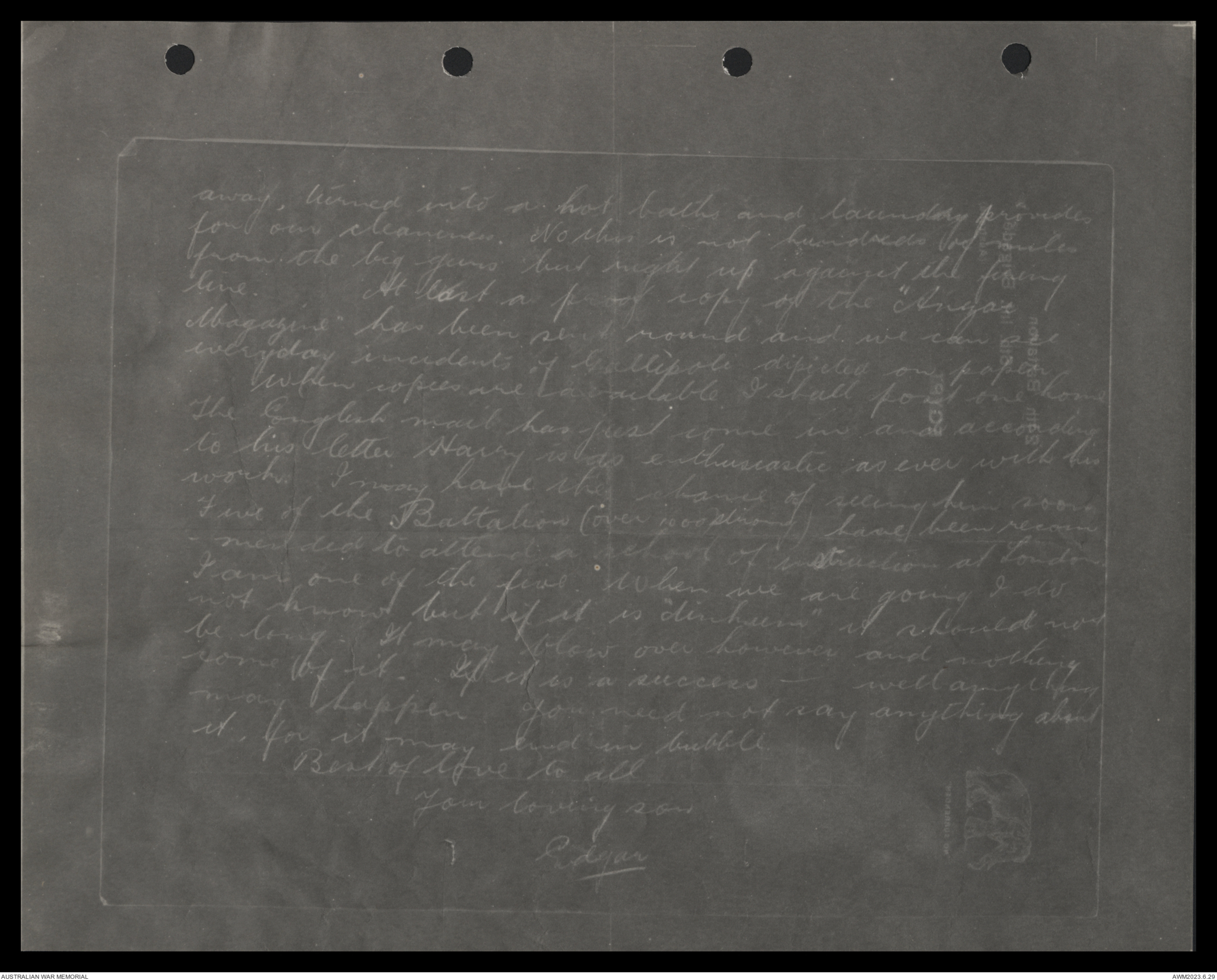 line. At last a proof copy of the "Anzac