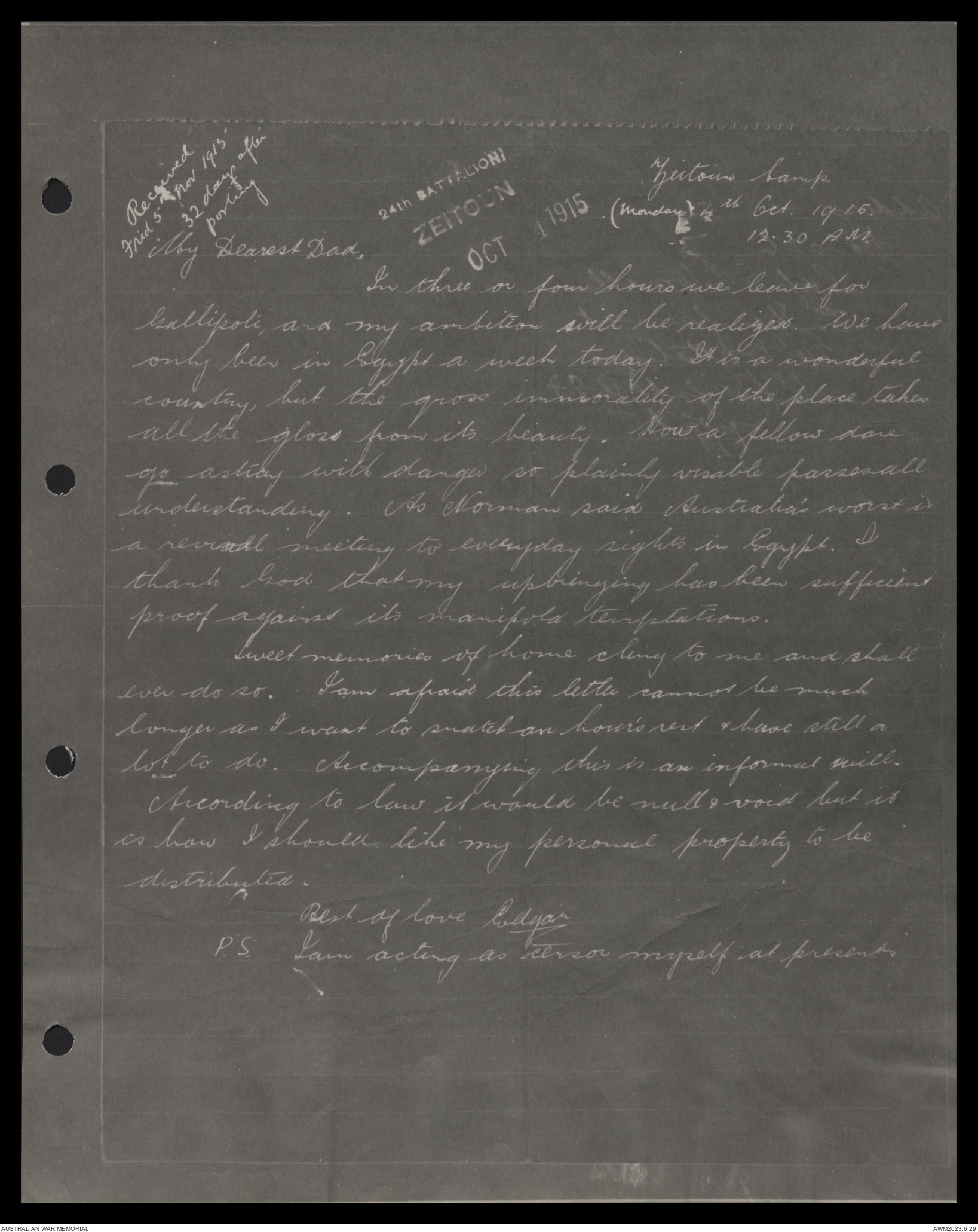 Harry wrote from Port Said and