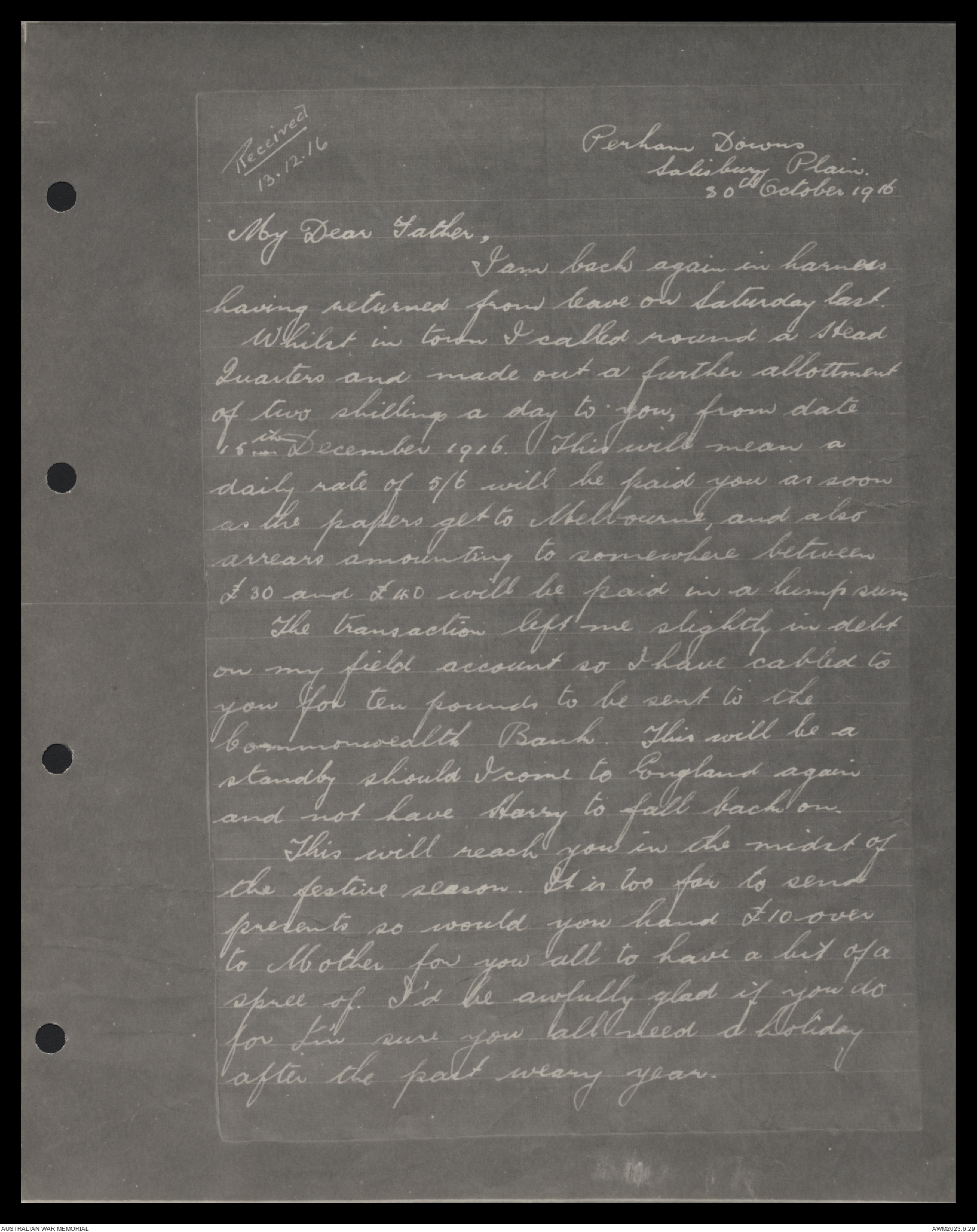 16th December 1916. This will mean a