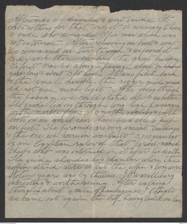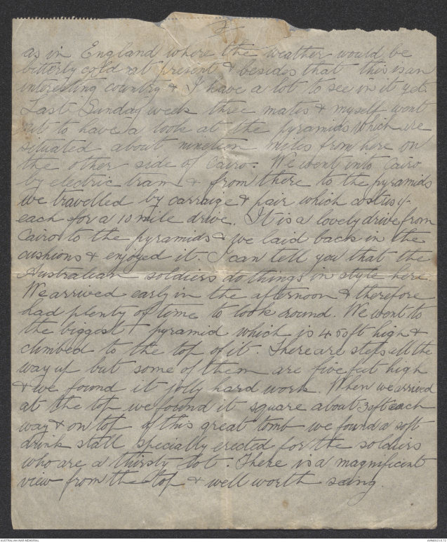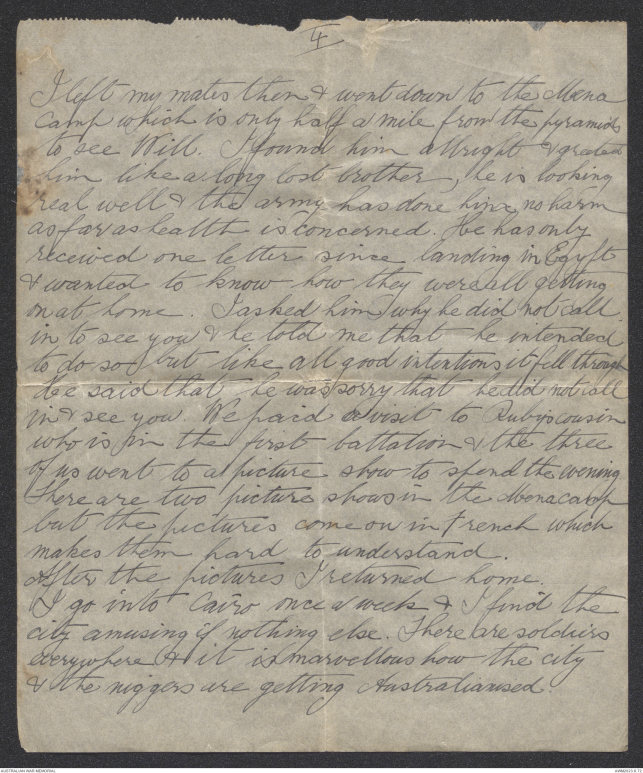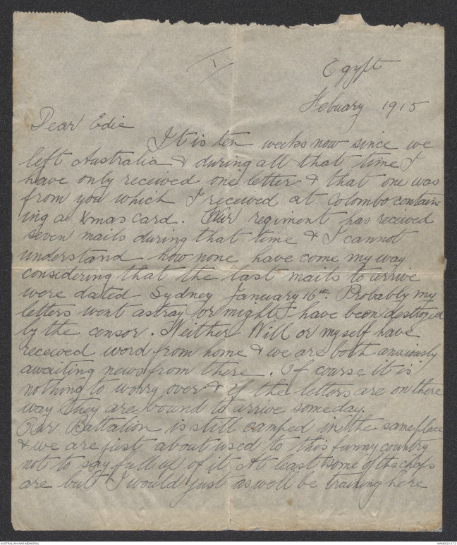 received one letter since landing in Egypt