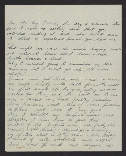 Contents of the Comforts were, 1 tin fruit, 1 tin