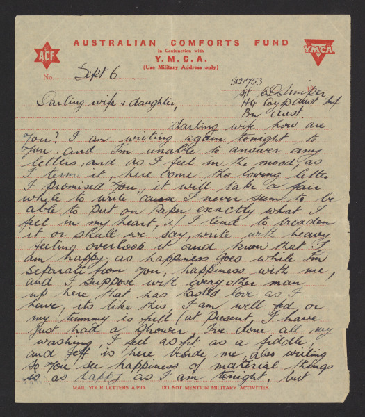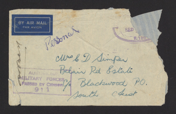 Letters from Lt Colin Douglas Simper to Mrs Irene Simper Wallet 1, Part 4