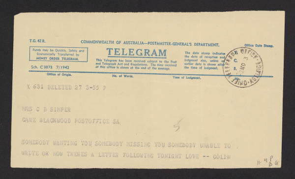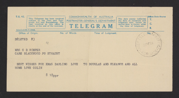 Letters from Lt Colin Douglas Simper to Mrs Irene Simper Wallet 1, Part 5