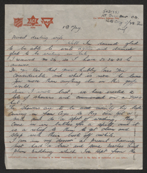 Letters from Lt Colin Douglas Simper to Mrs Irene Simper Wallet 2, Part 30