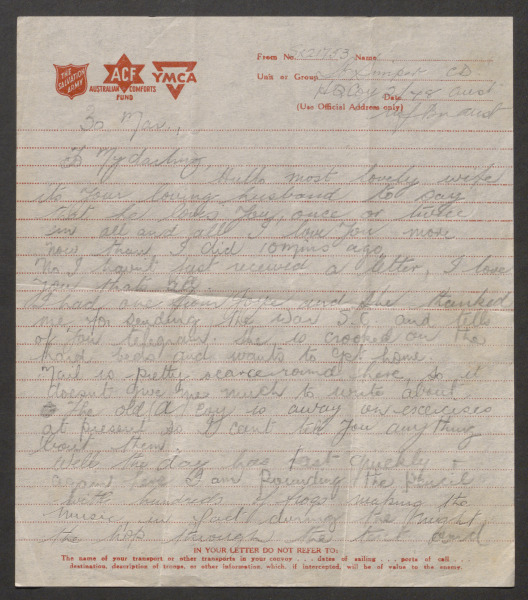 Letters from Lt Colin Douglas Simper to Mrs Irene Simper Wallet 2, Part 6