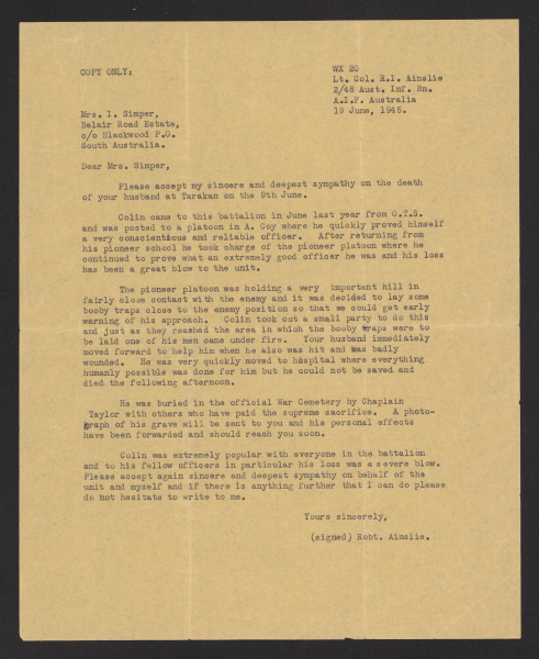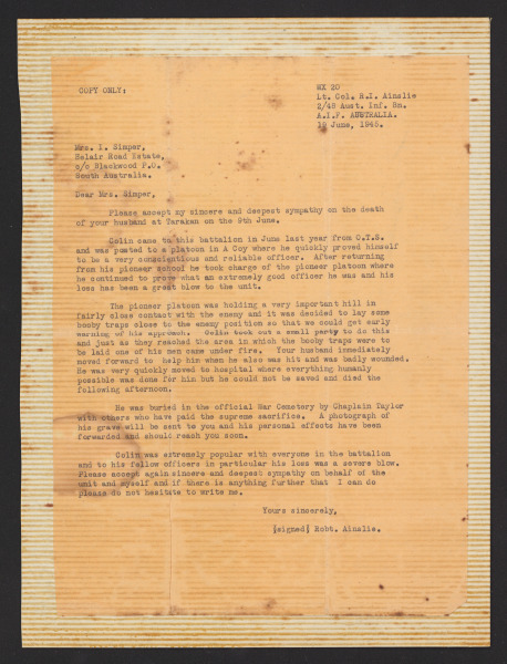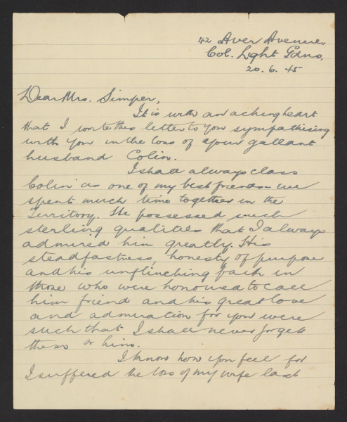 Letters from Lt Colin Douglas Simper to Mrs Irene Simper Wallet 3, Part 1