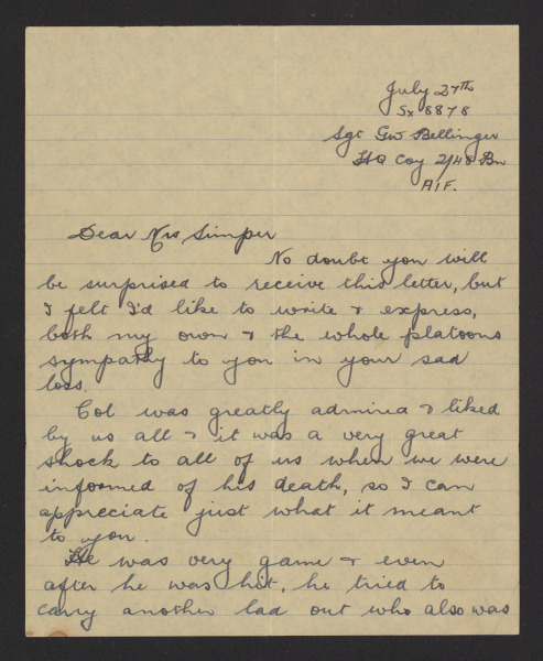 Letters from Lt Colin Douglas Simper to Mrs Irene Simper Wallet 3, Part 5