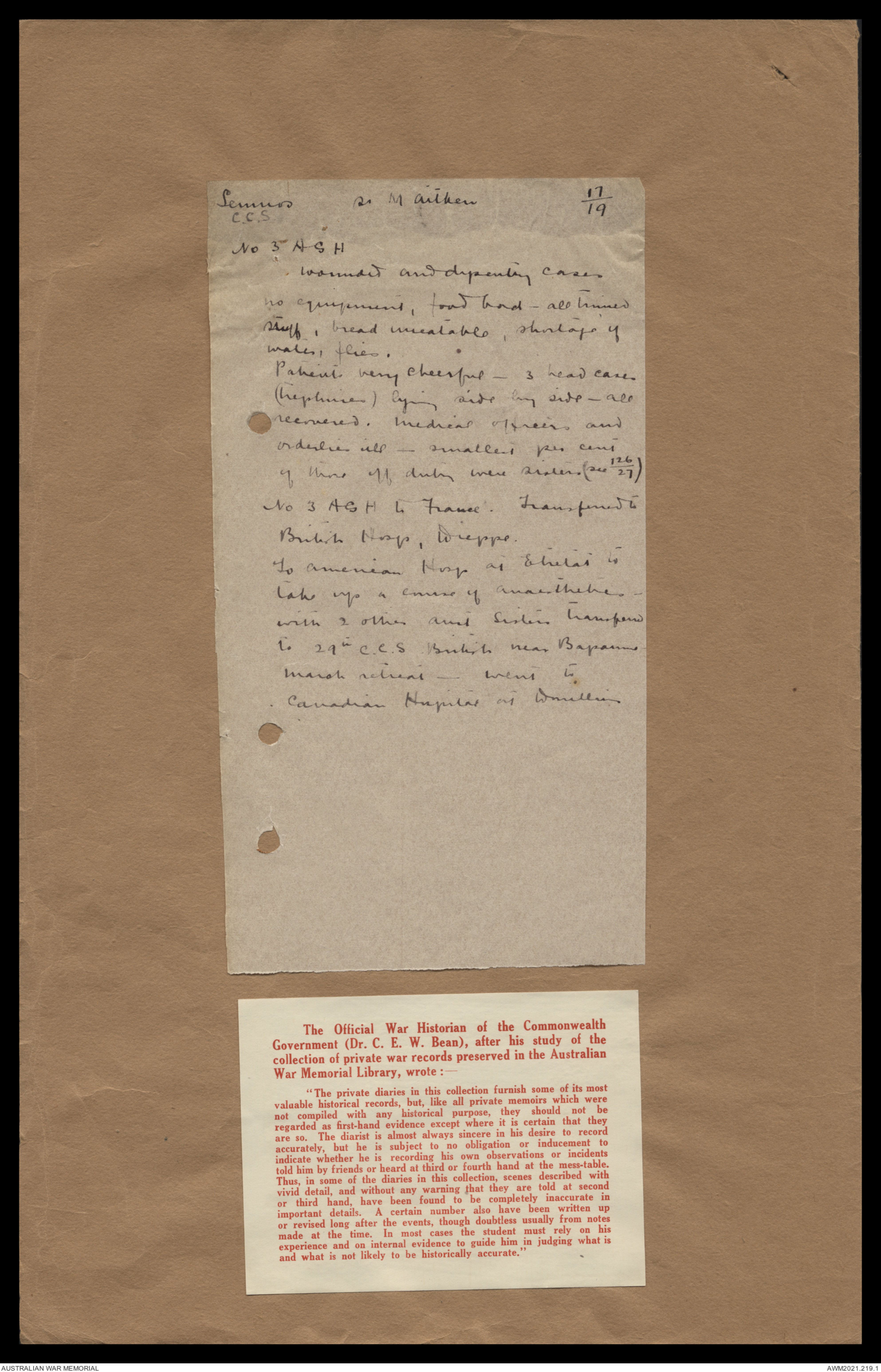 & worked at No 1 Imp Clearing Hospital (A.I.F)