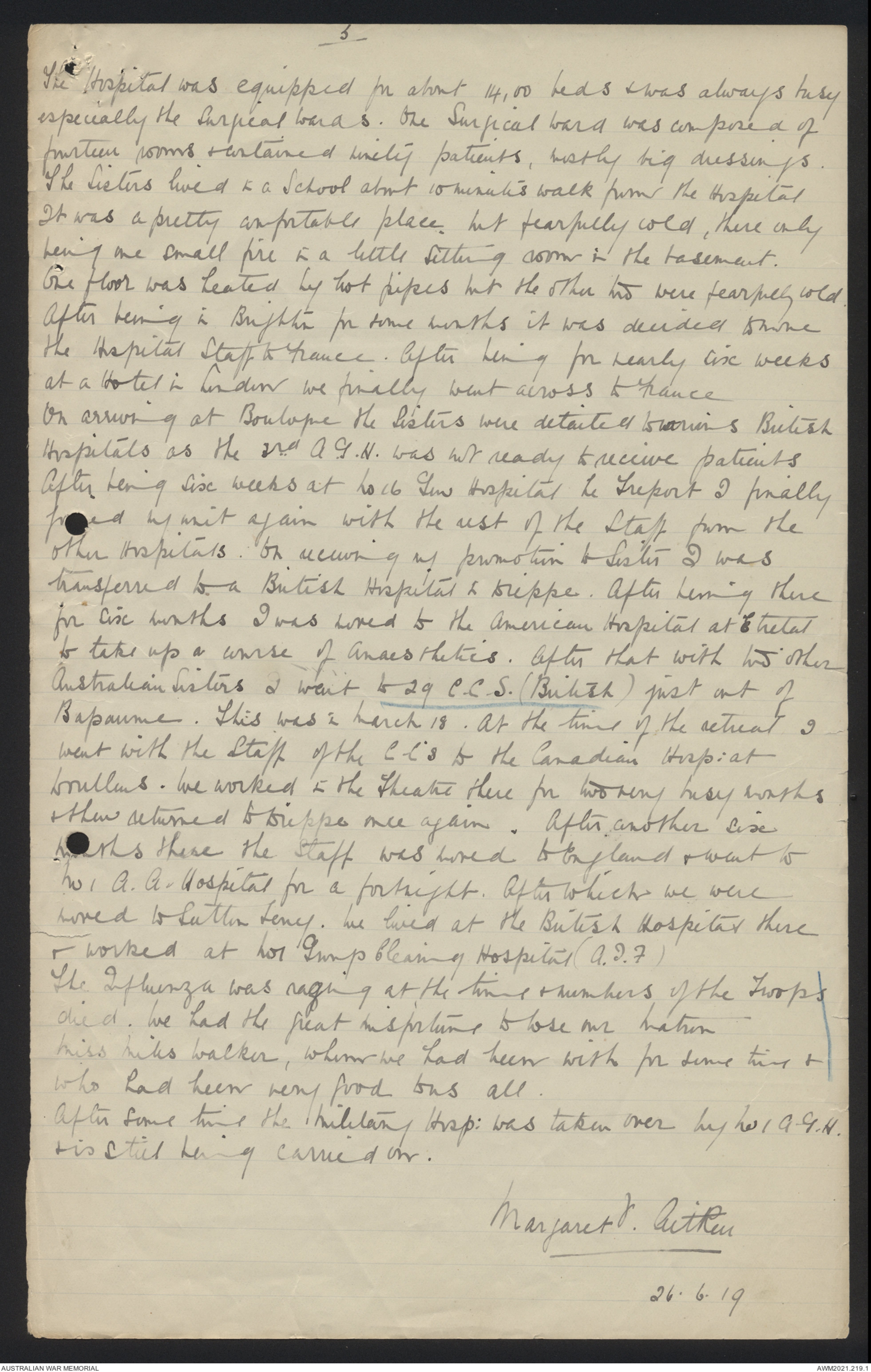 After some time the Military Hosp: was taken over by No 1 A.G.H