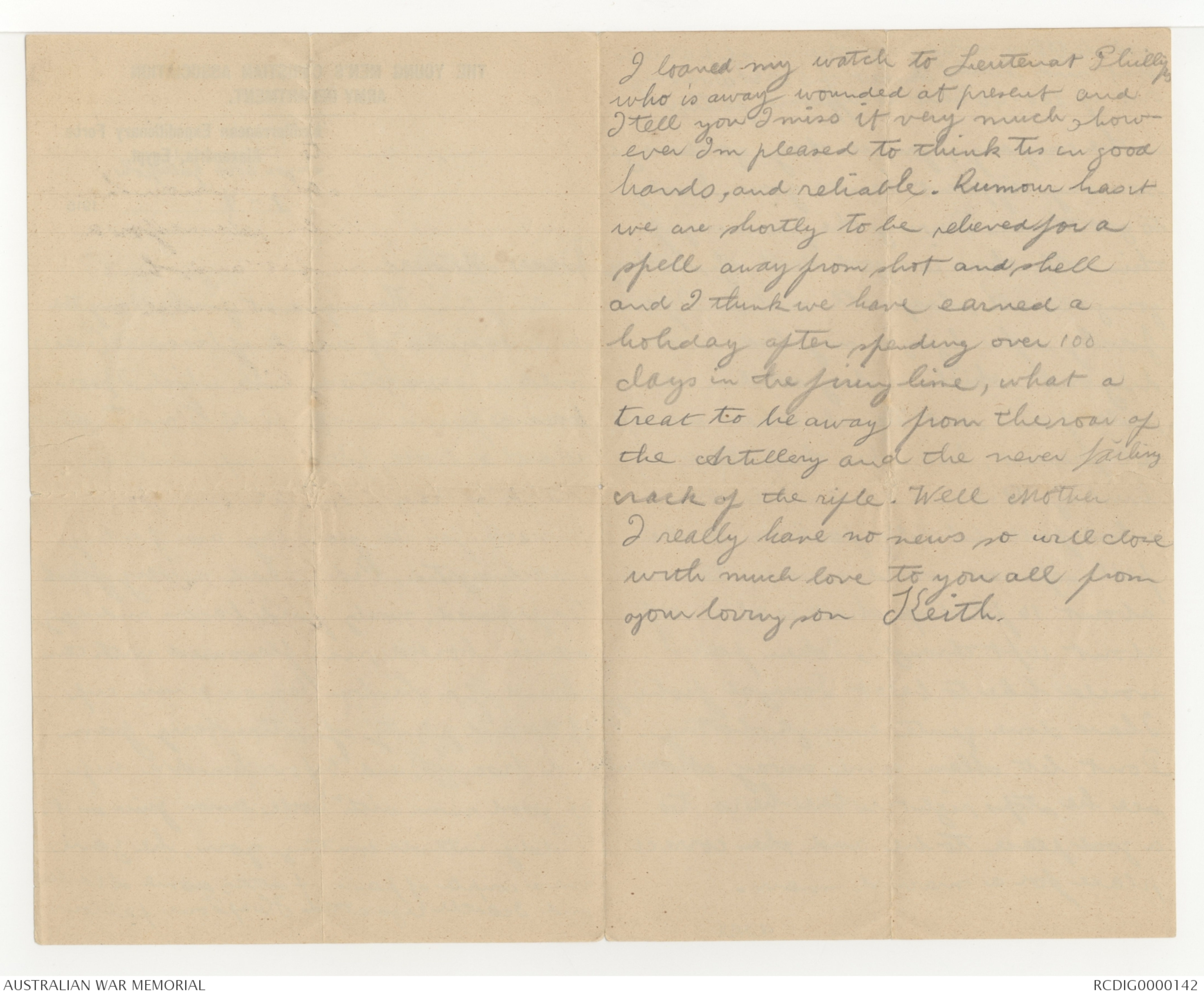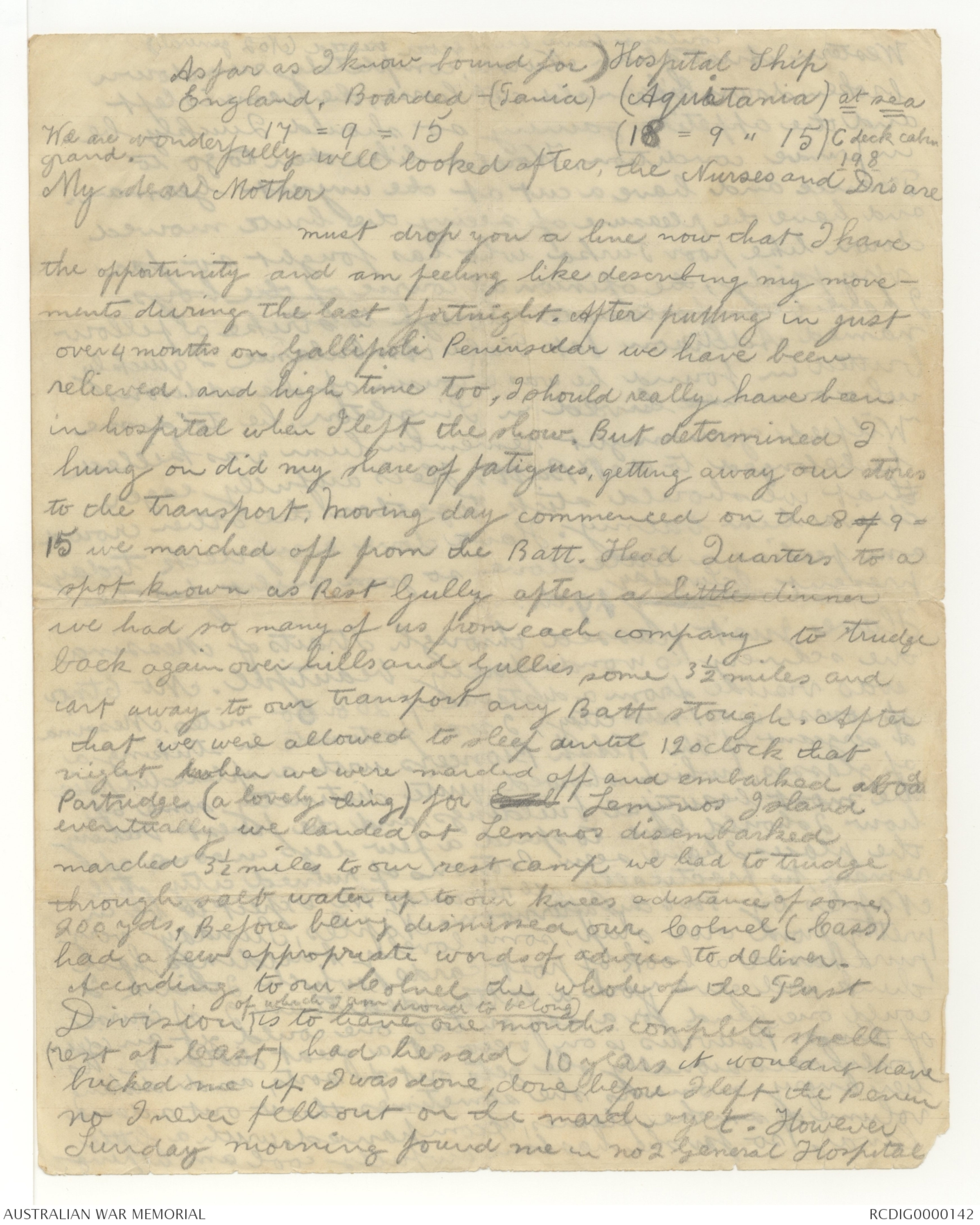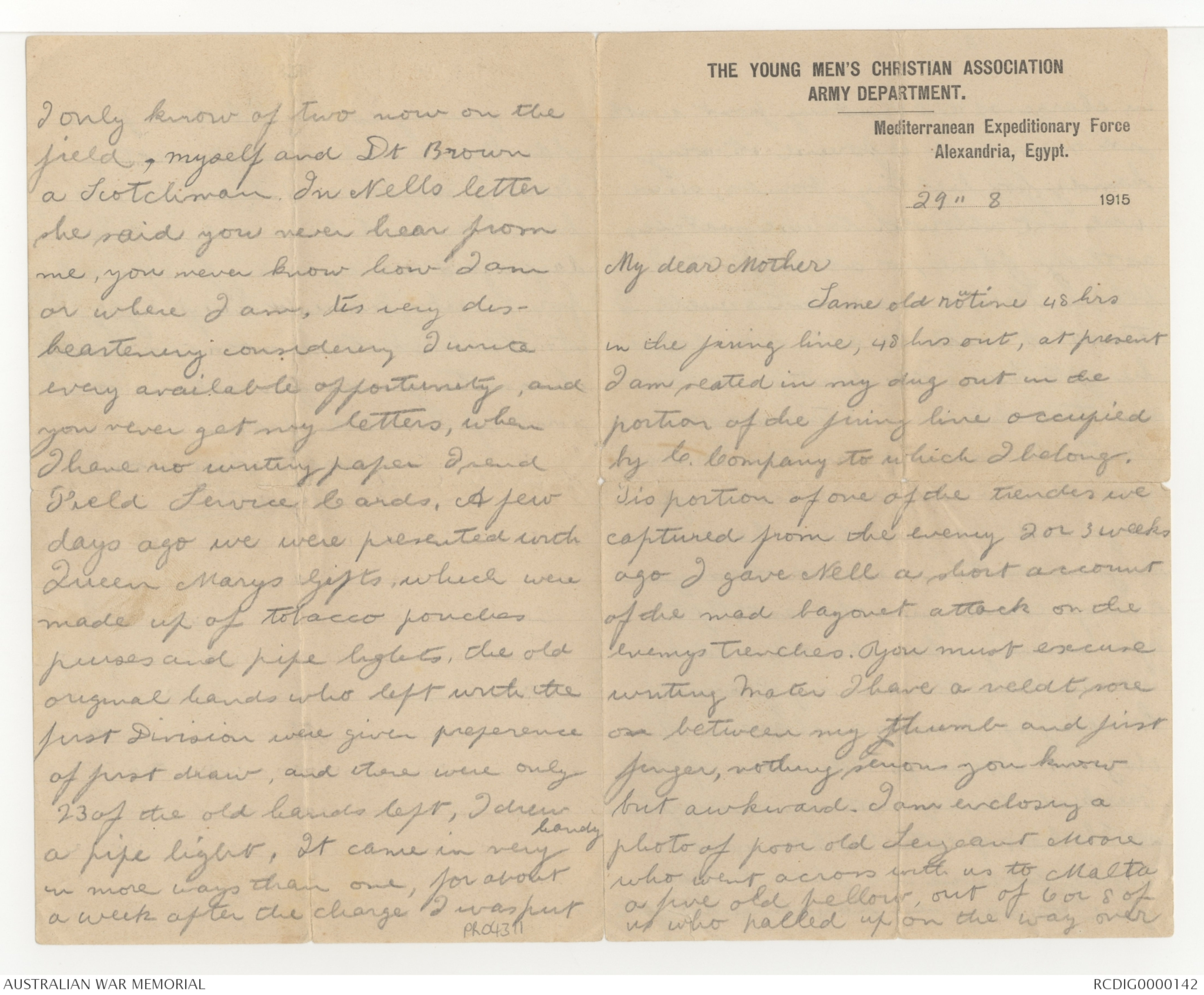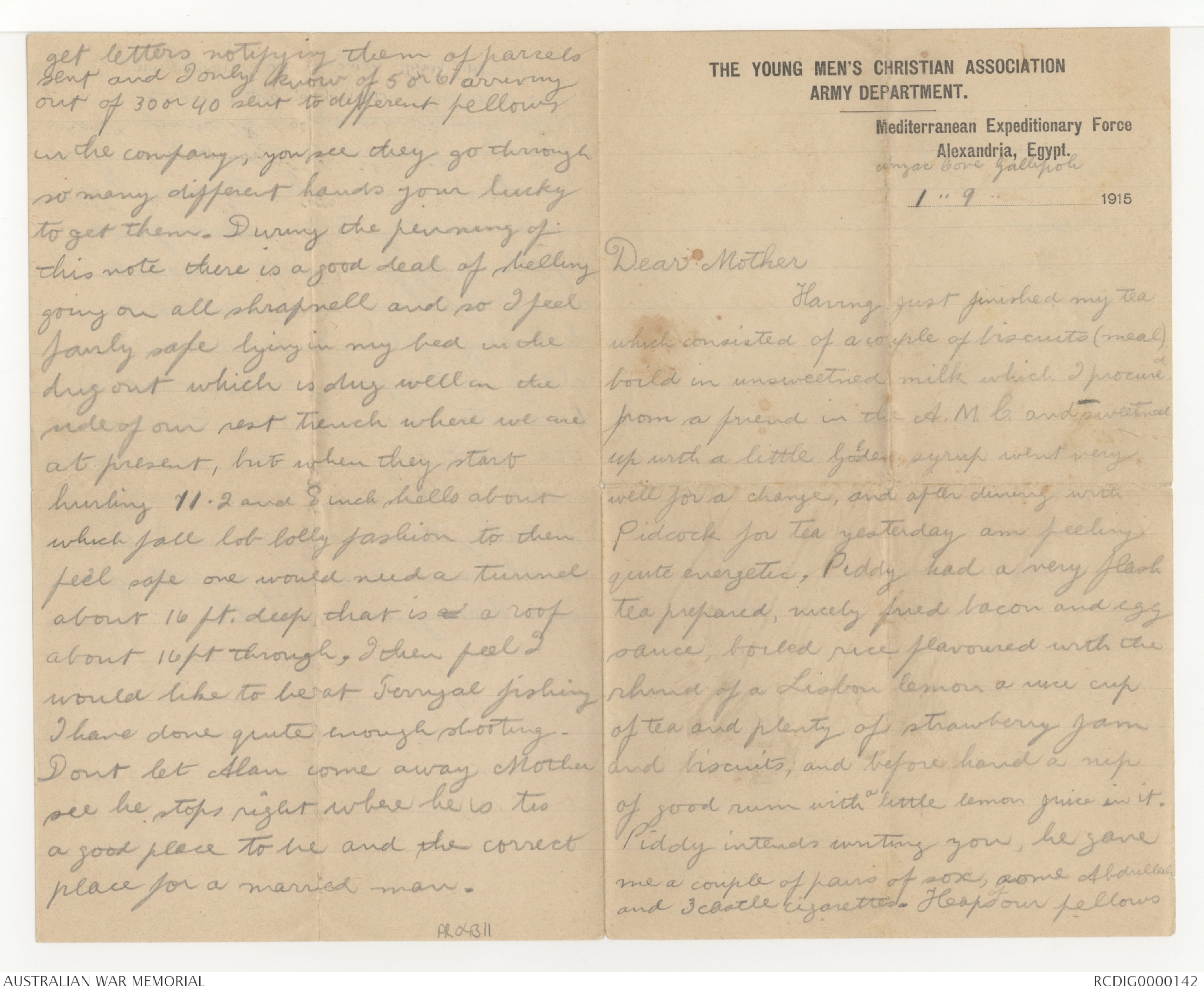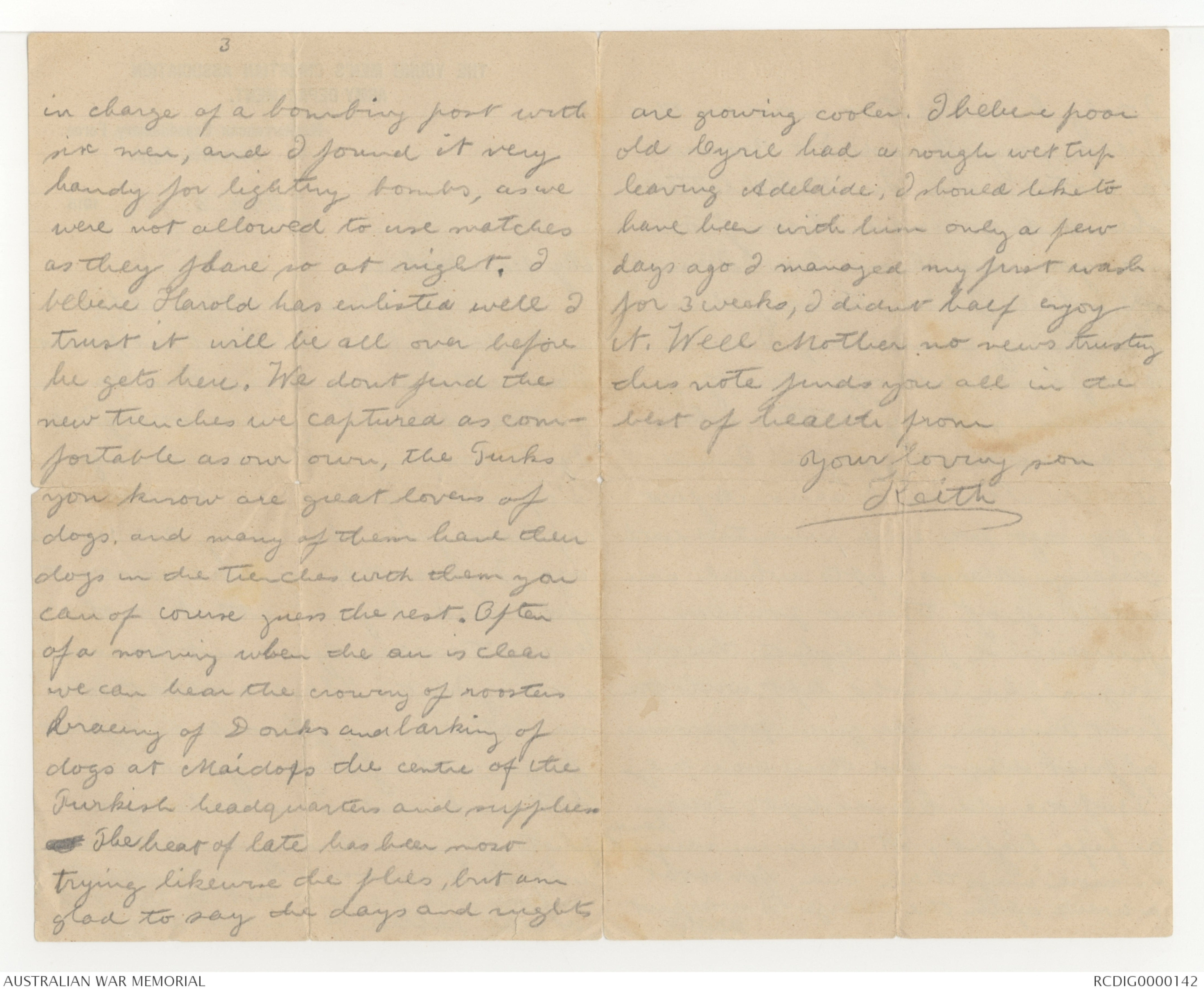 Letters from Keith Rourke to his mother, and related correspondence to Mrs Rourke, 1914-1915 - Part 4