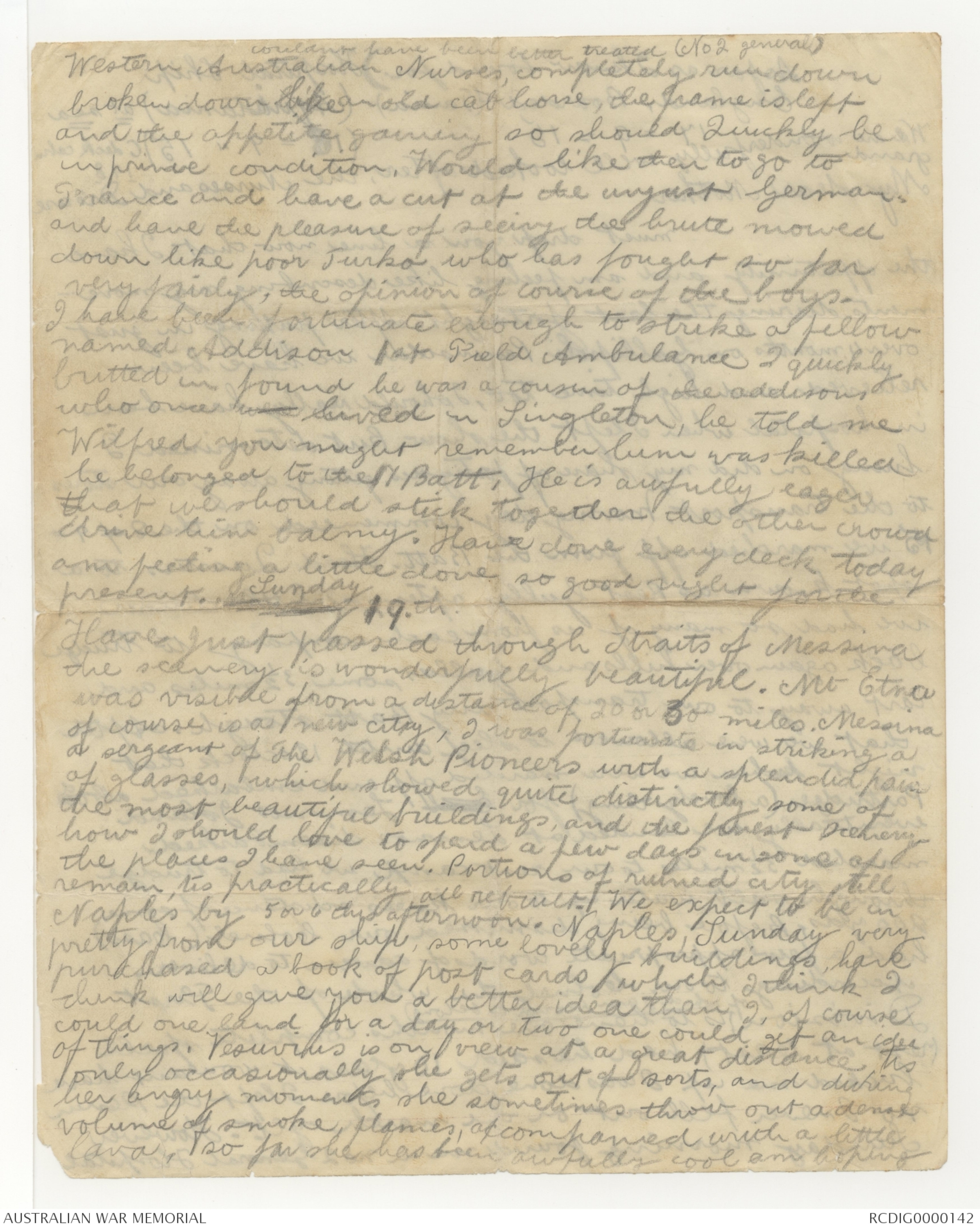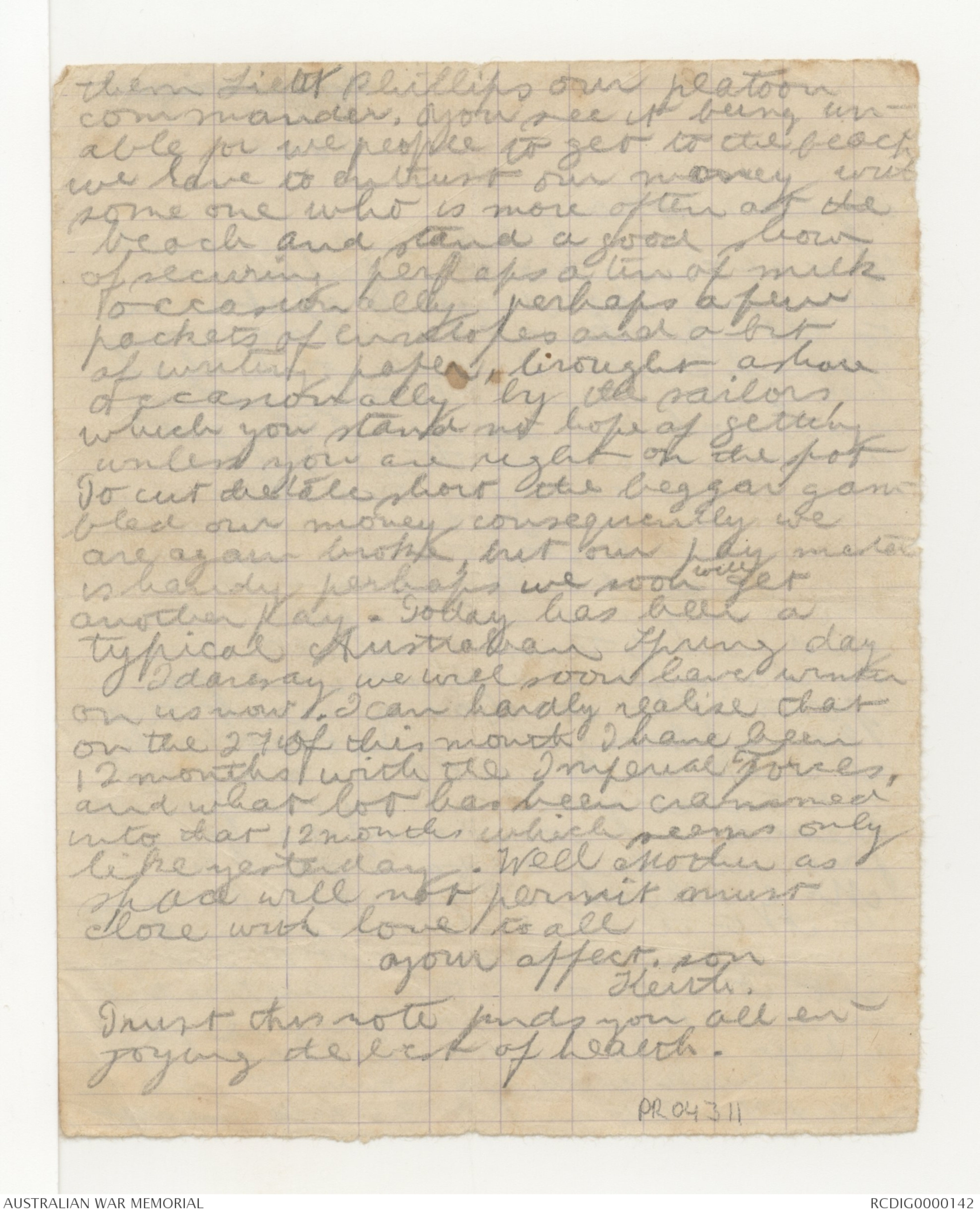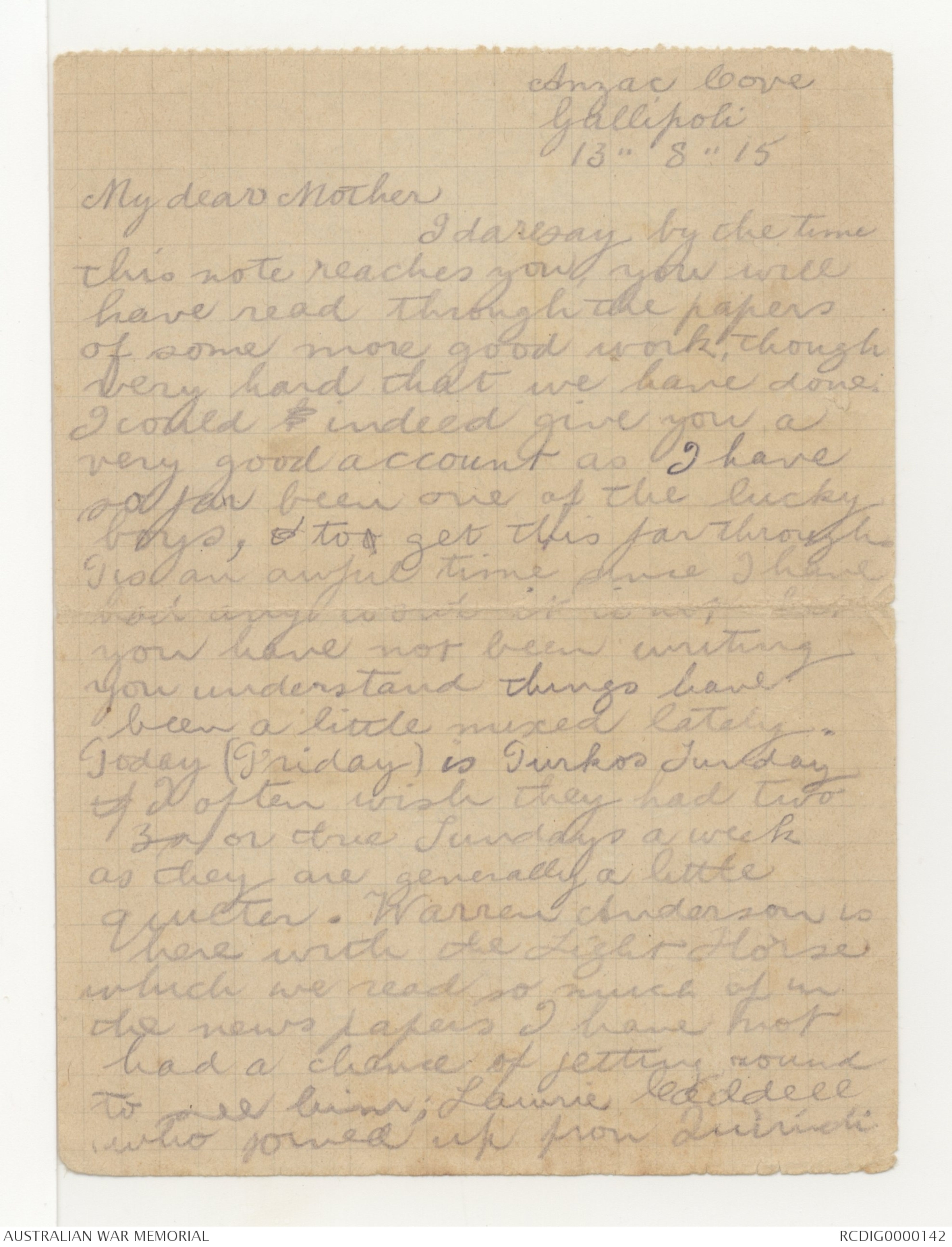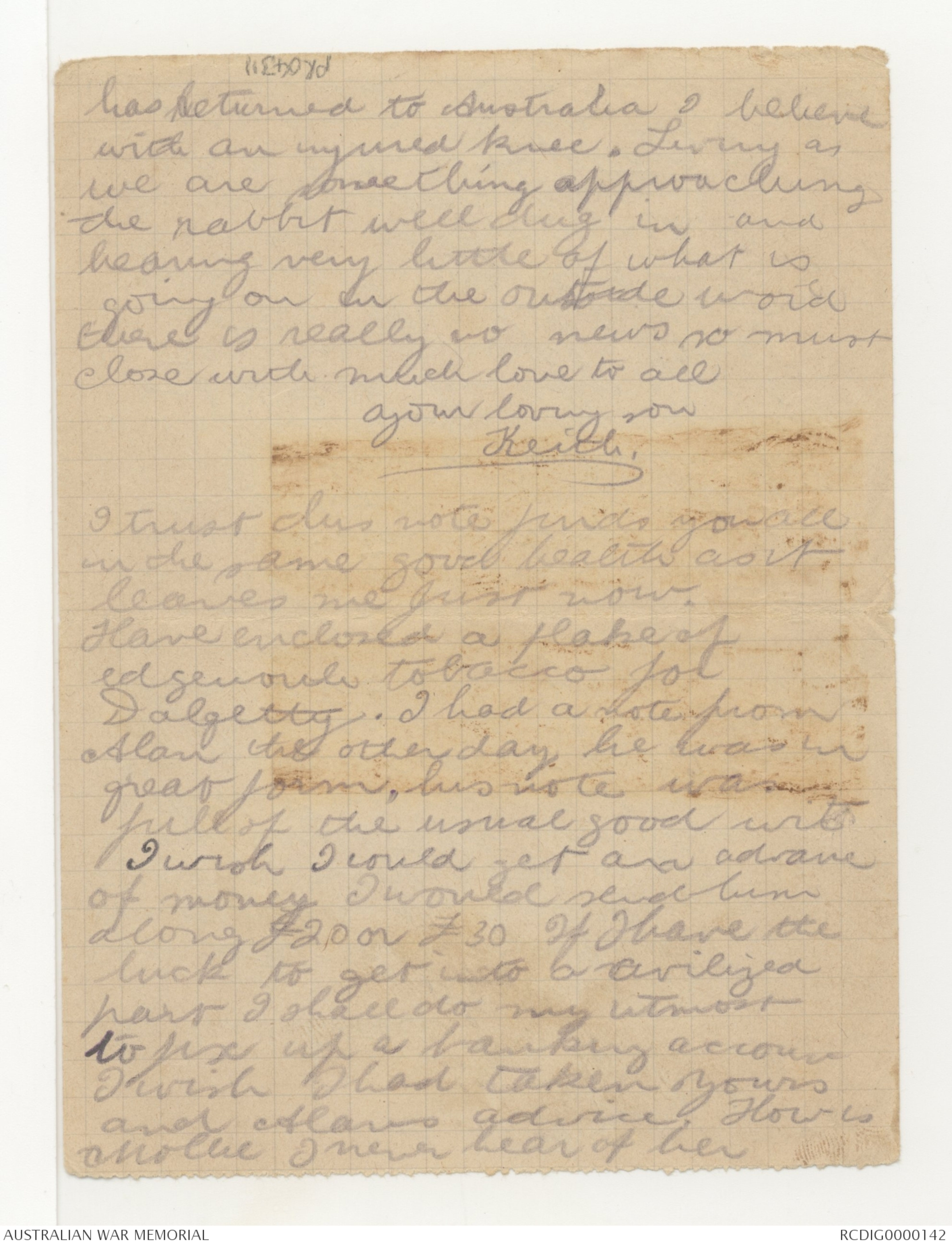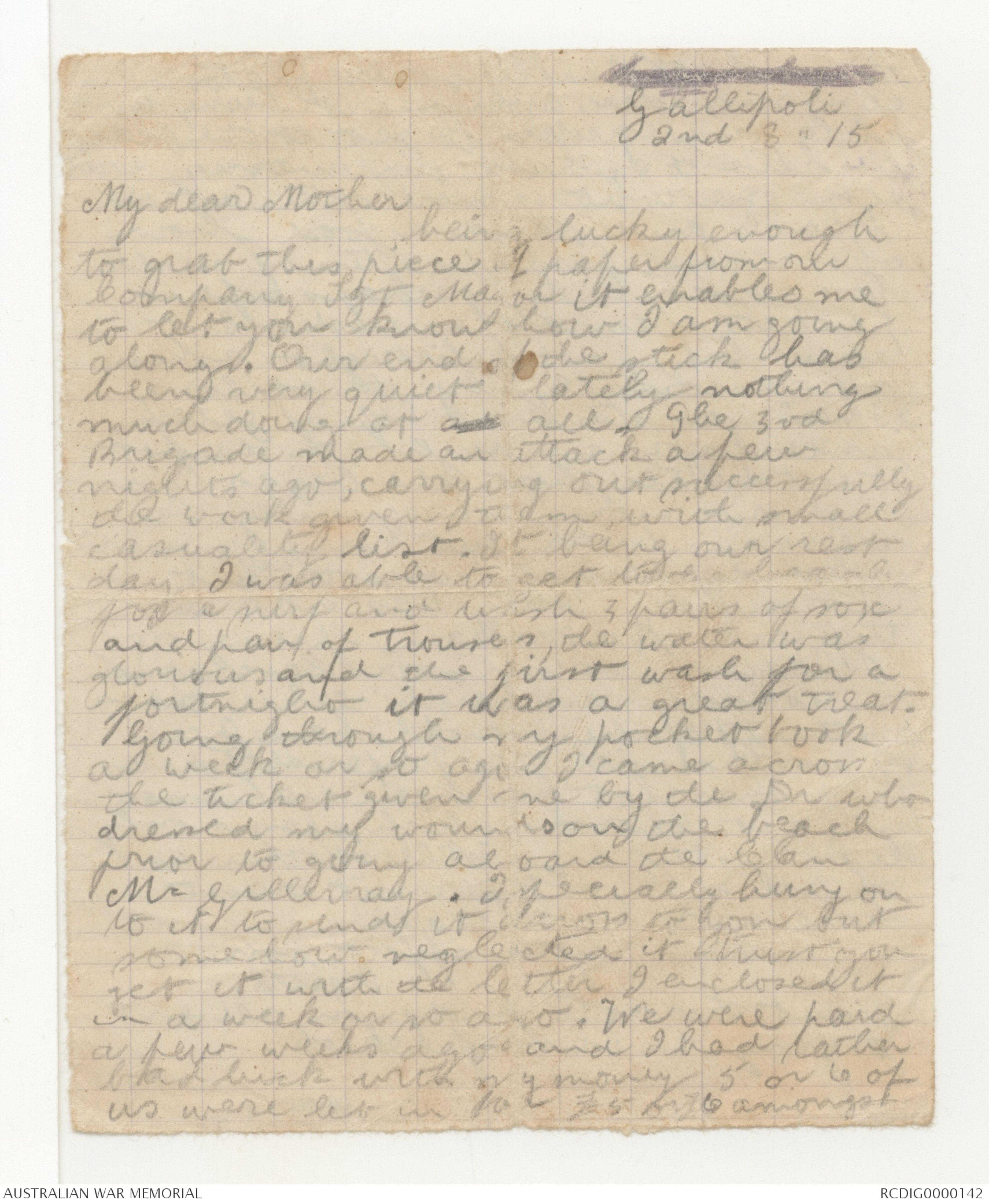 Letters from Keith Rourke to his mother, and related correspondence to Mrs Rourke, 1914-1915 - Part 4
