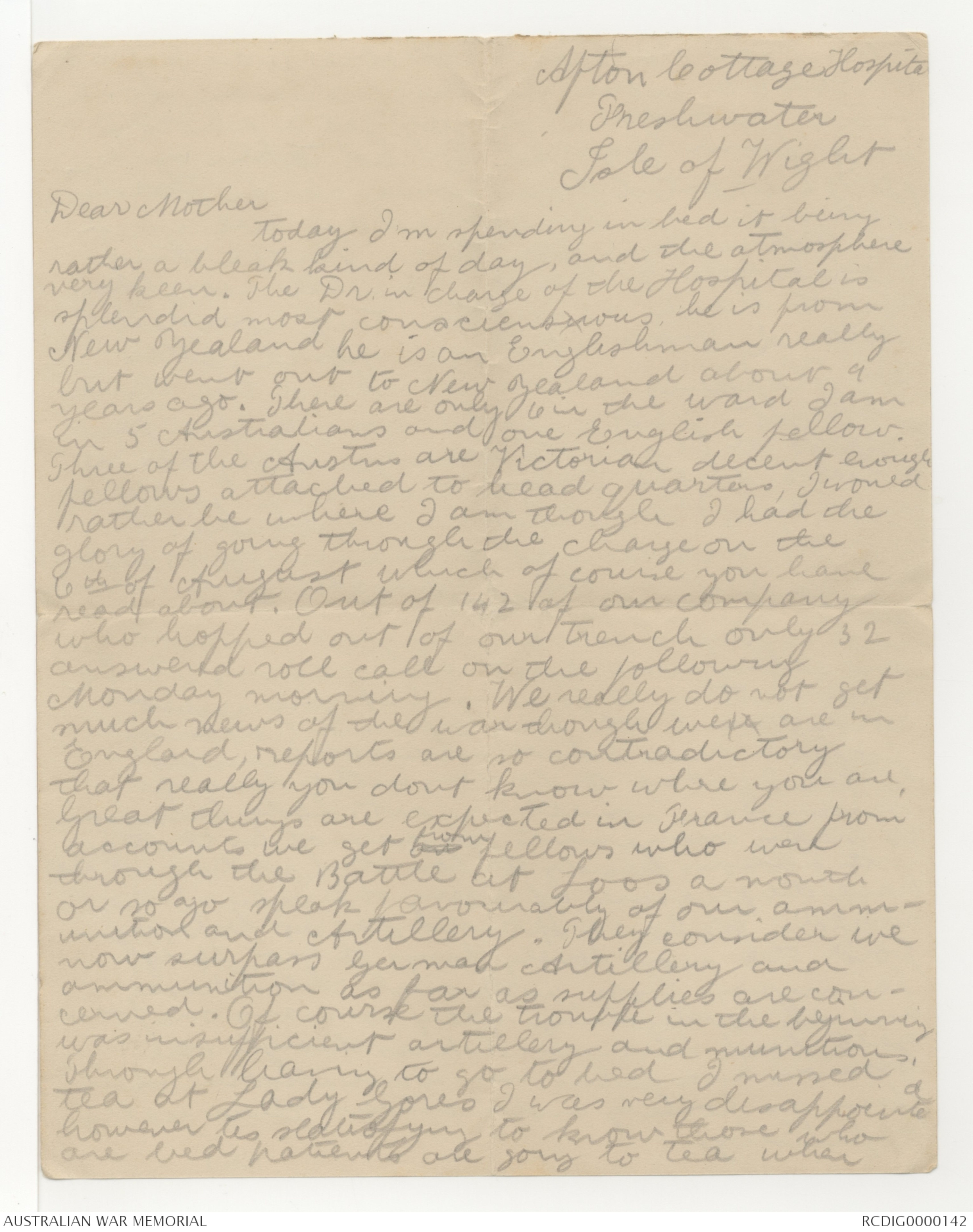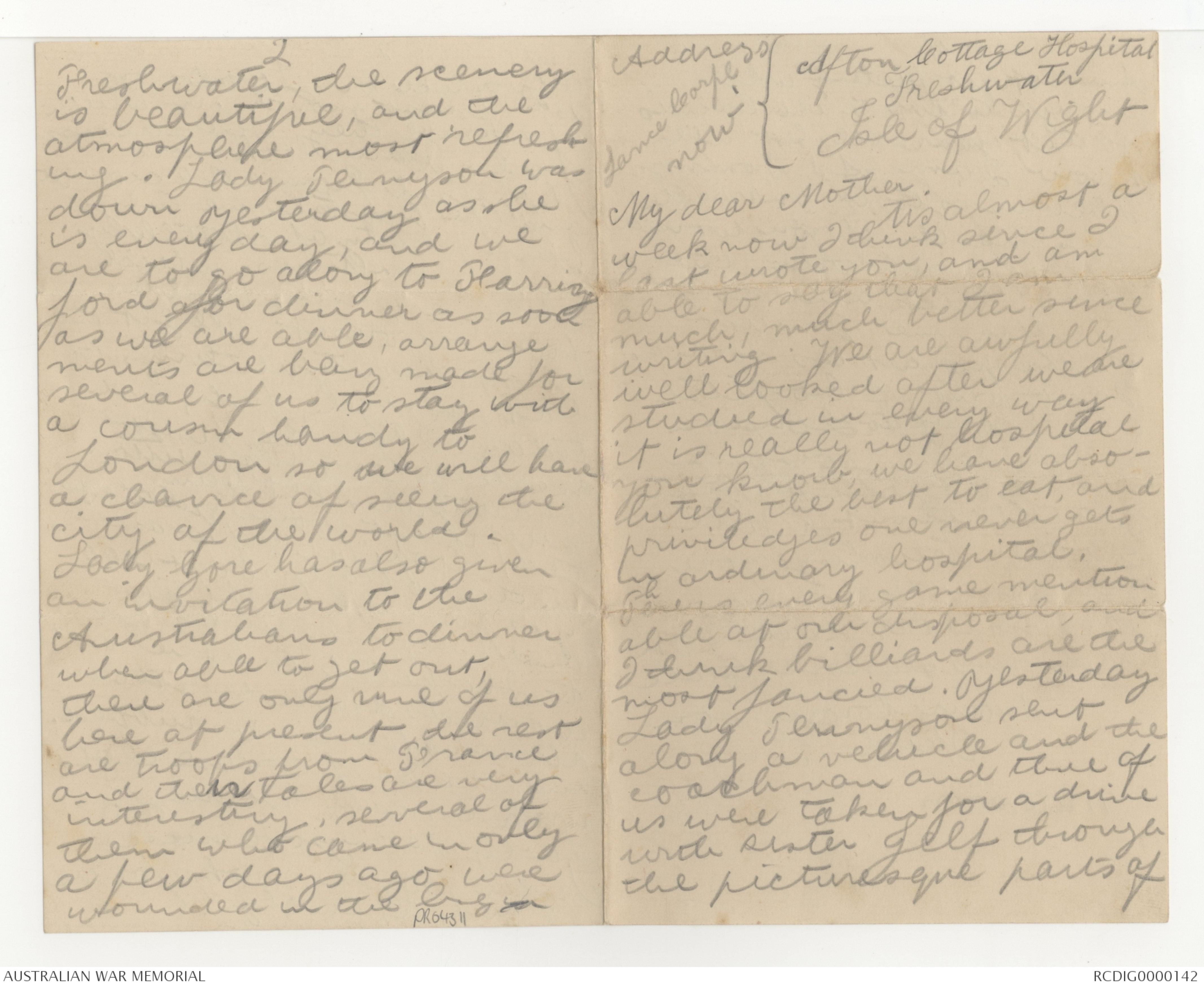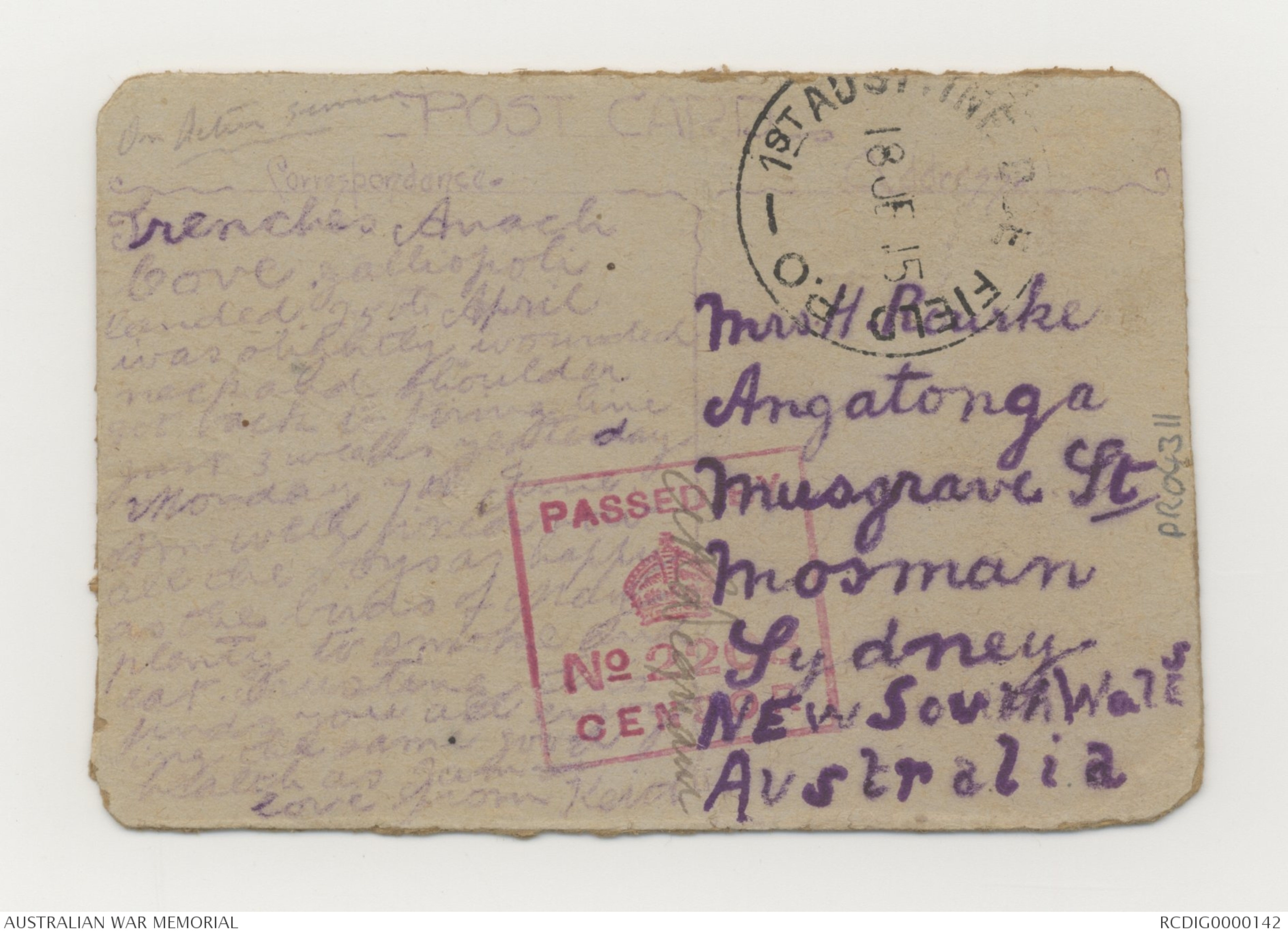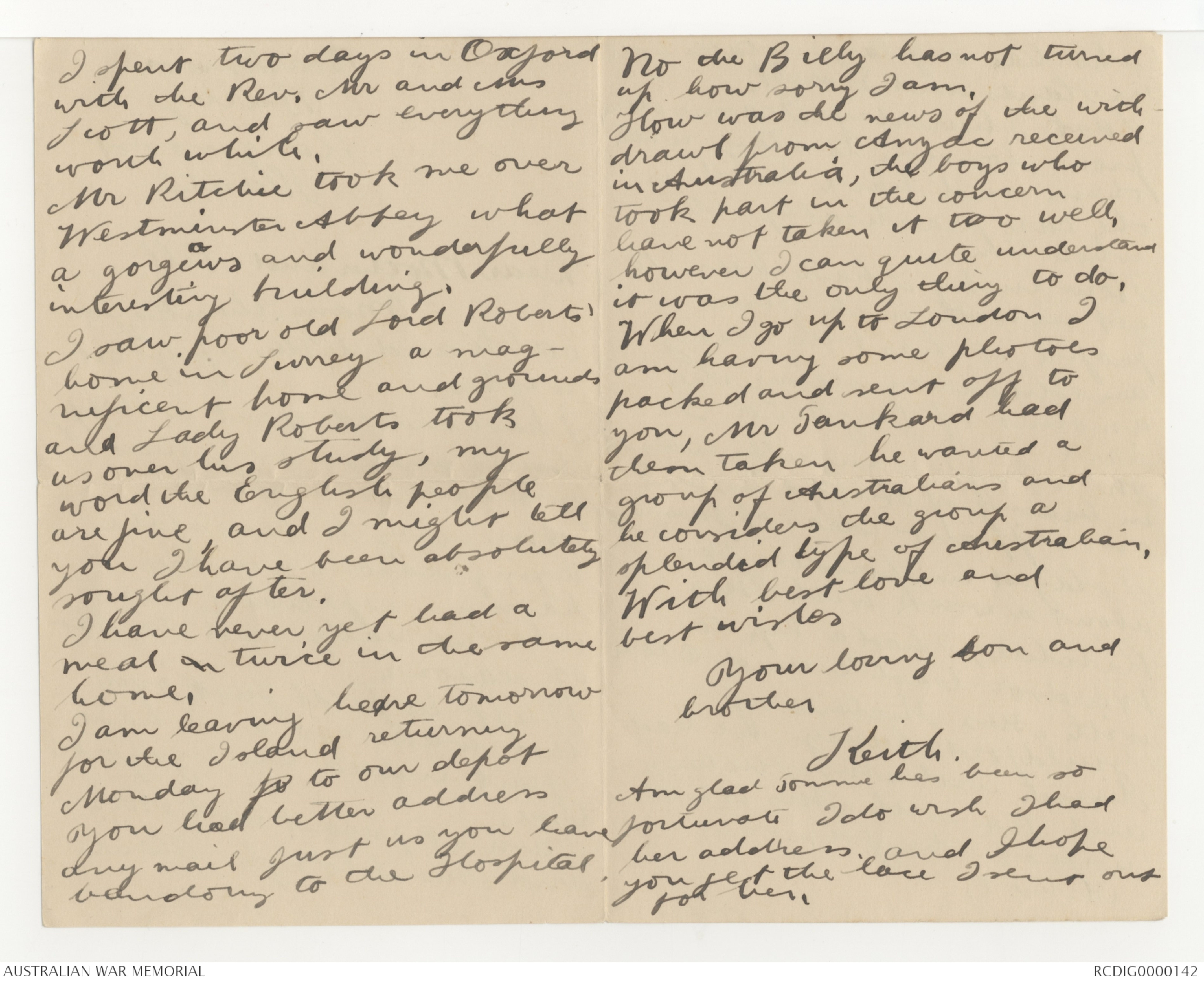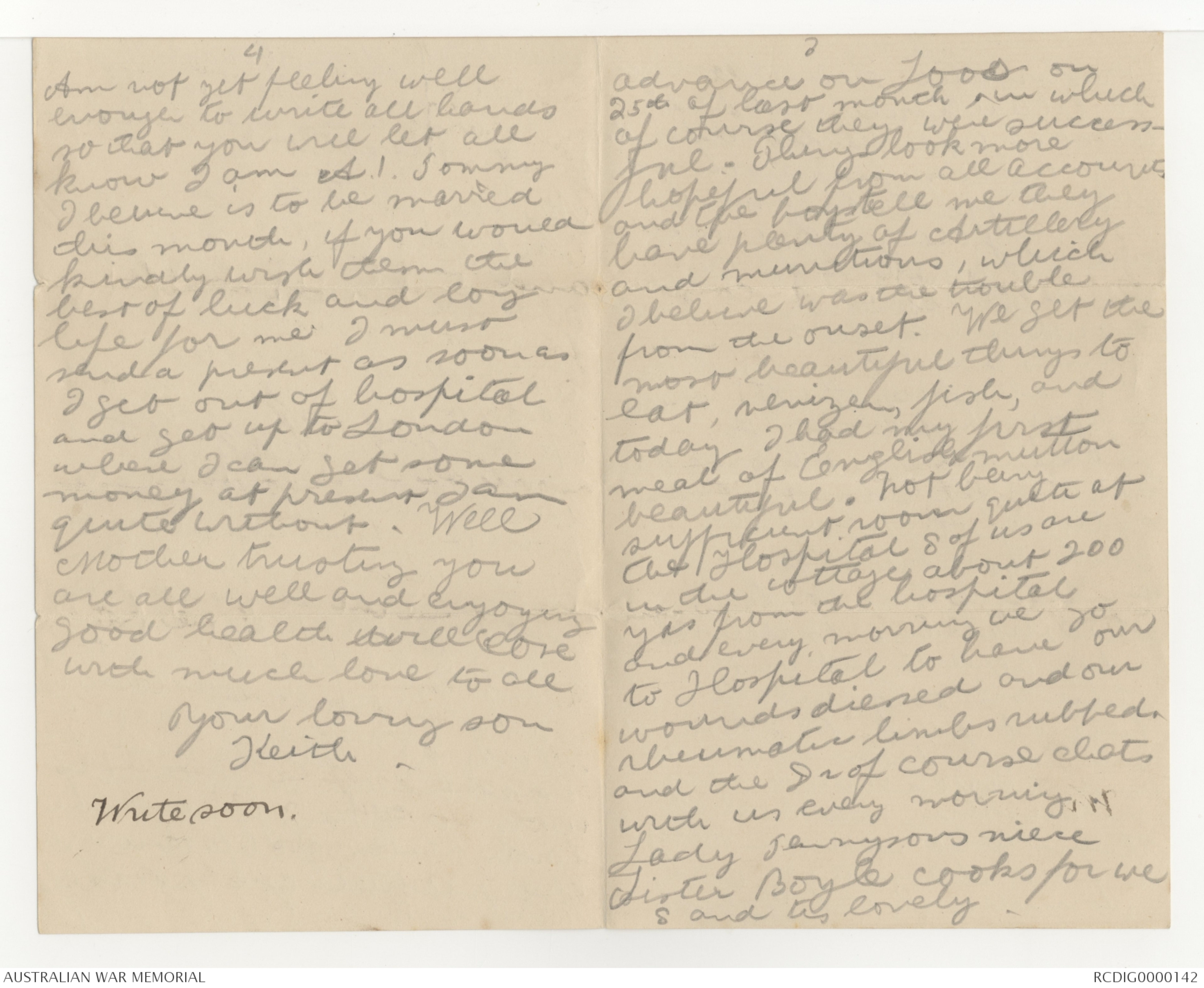 Letters from Keith Rourke to his mother, and related correspondence to Mrs Rourke, 1914-1915 - Part 6