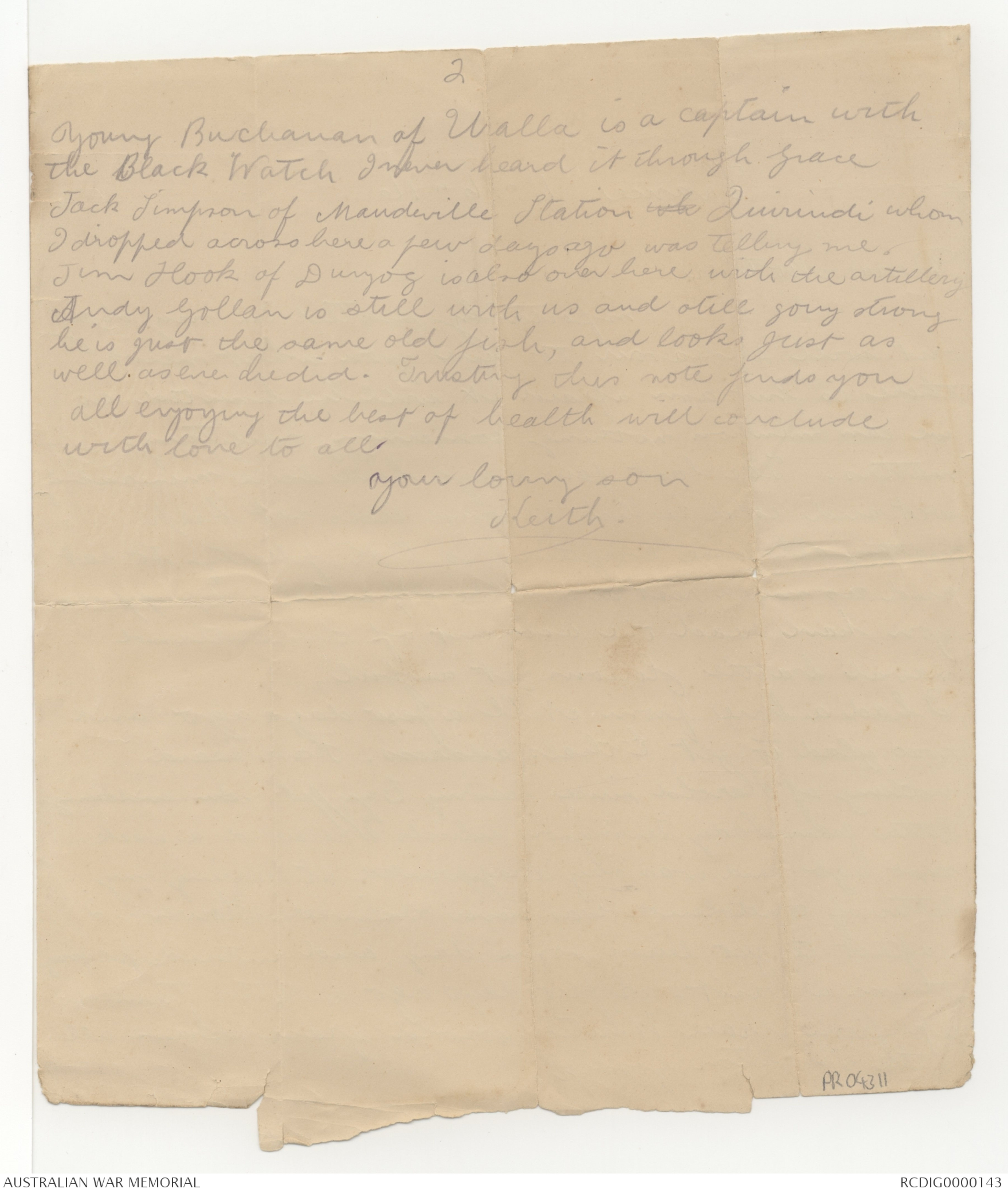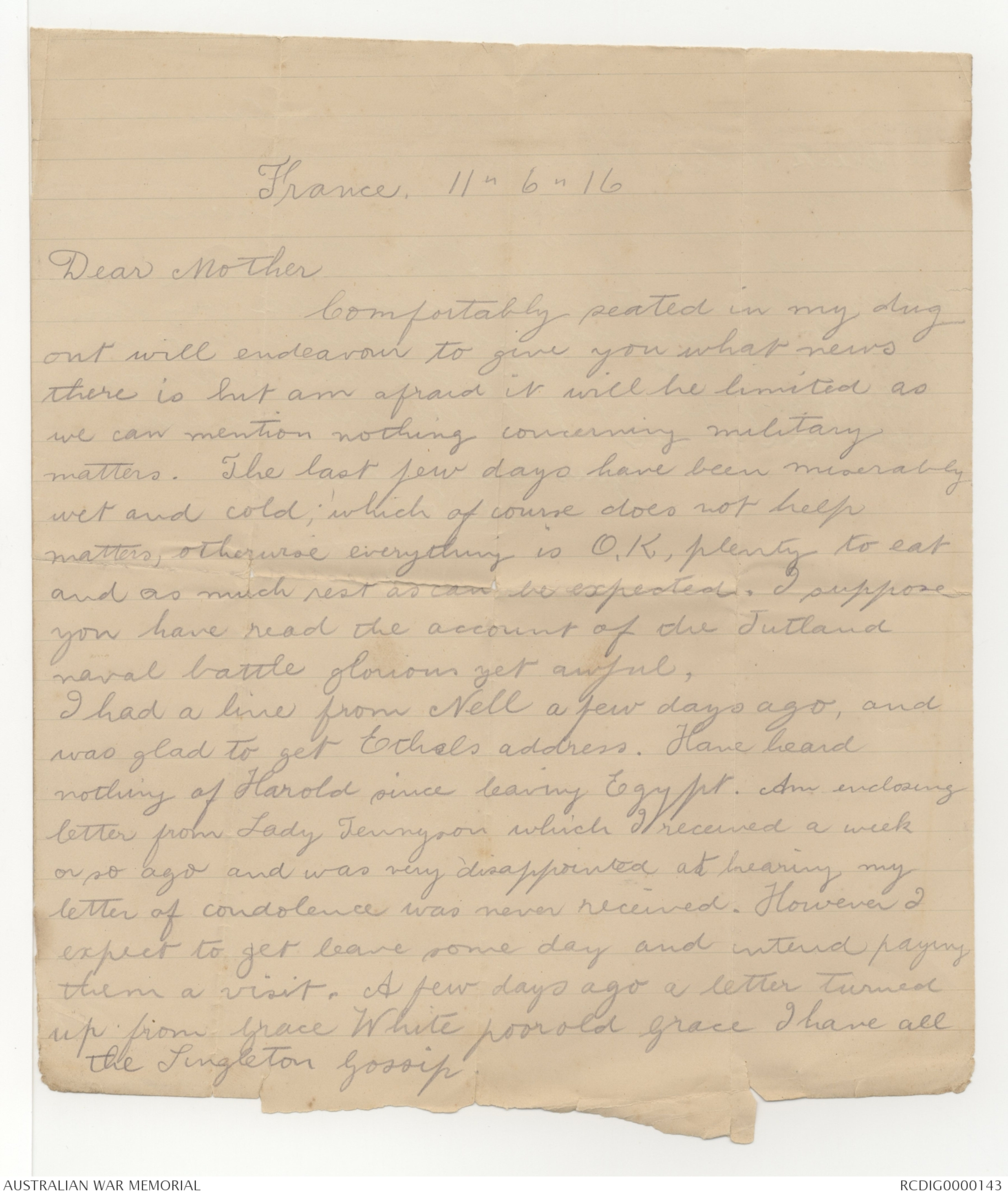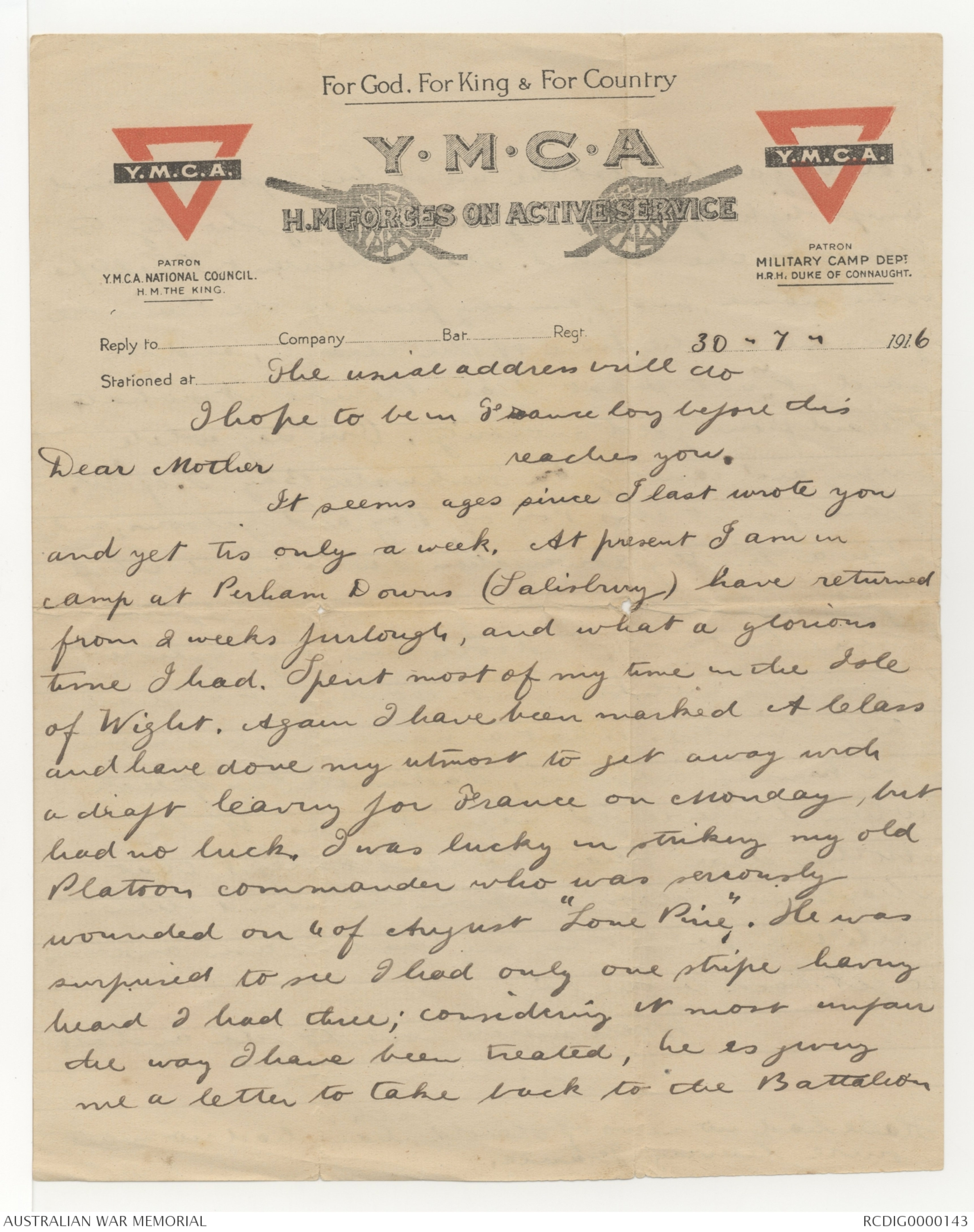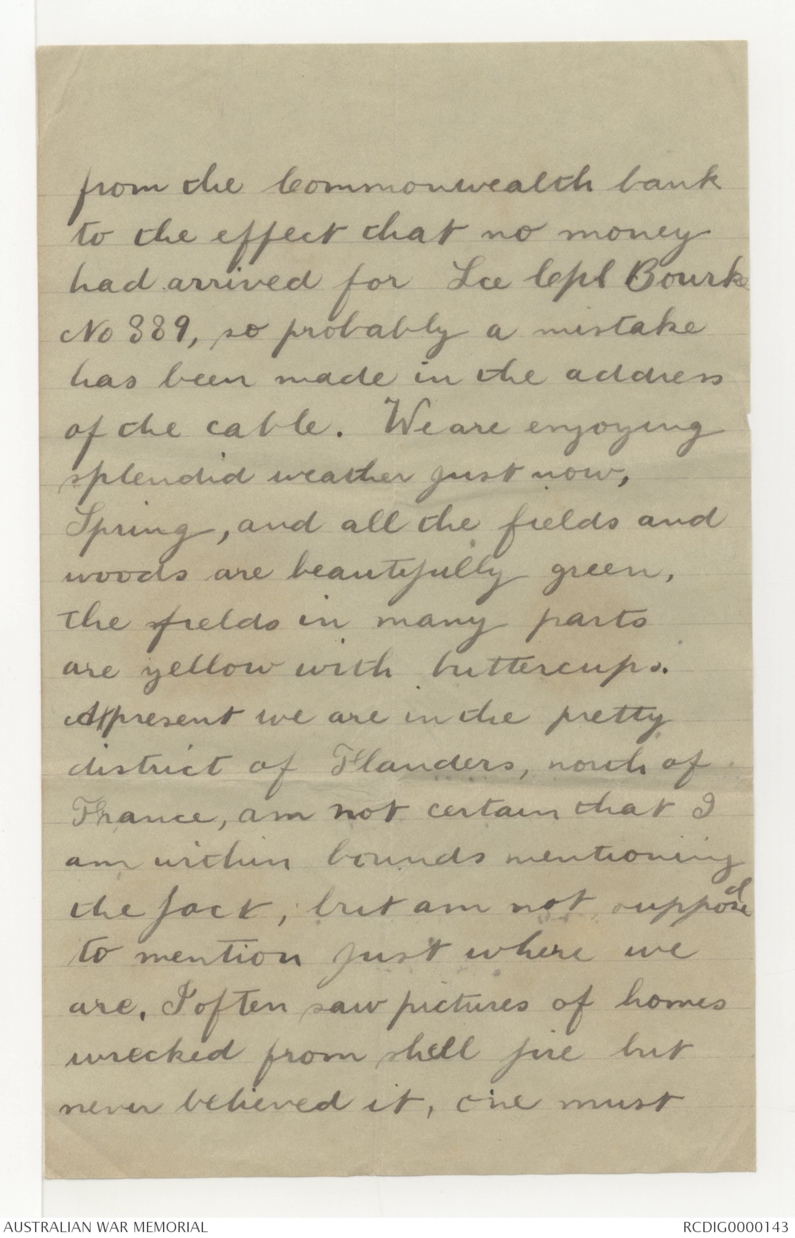 Letters from Keith Rourke to his mother, and related correspondence to Mrs Rourke, 1916 - Part 3