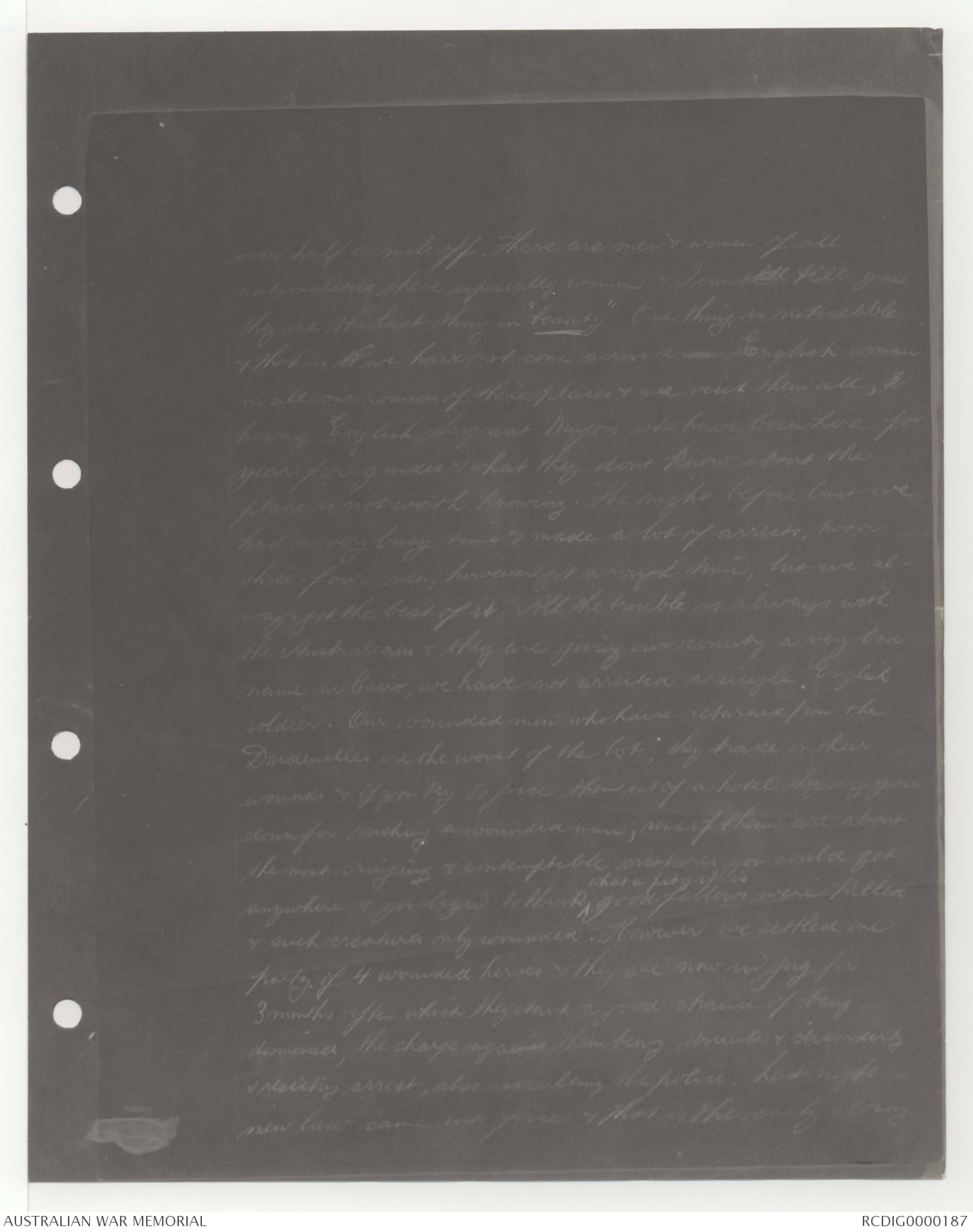 over half a mule off. There are men & women of all nationalities there especially women & I can xxx tell you