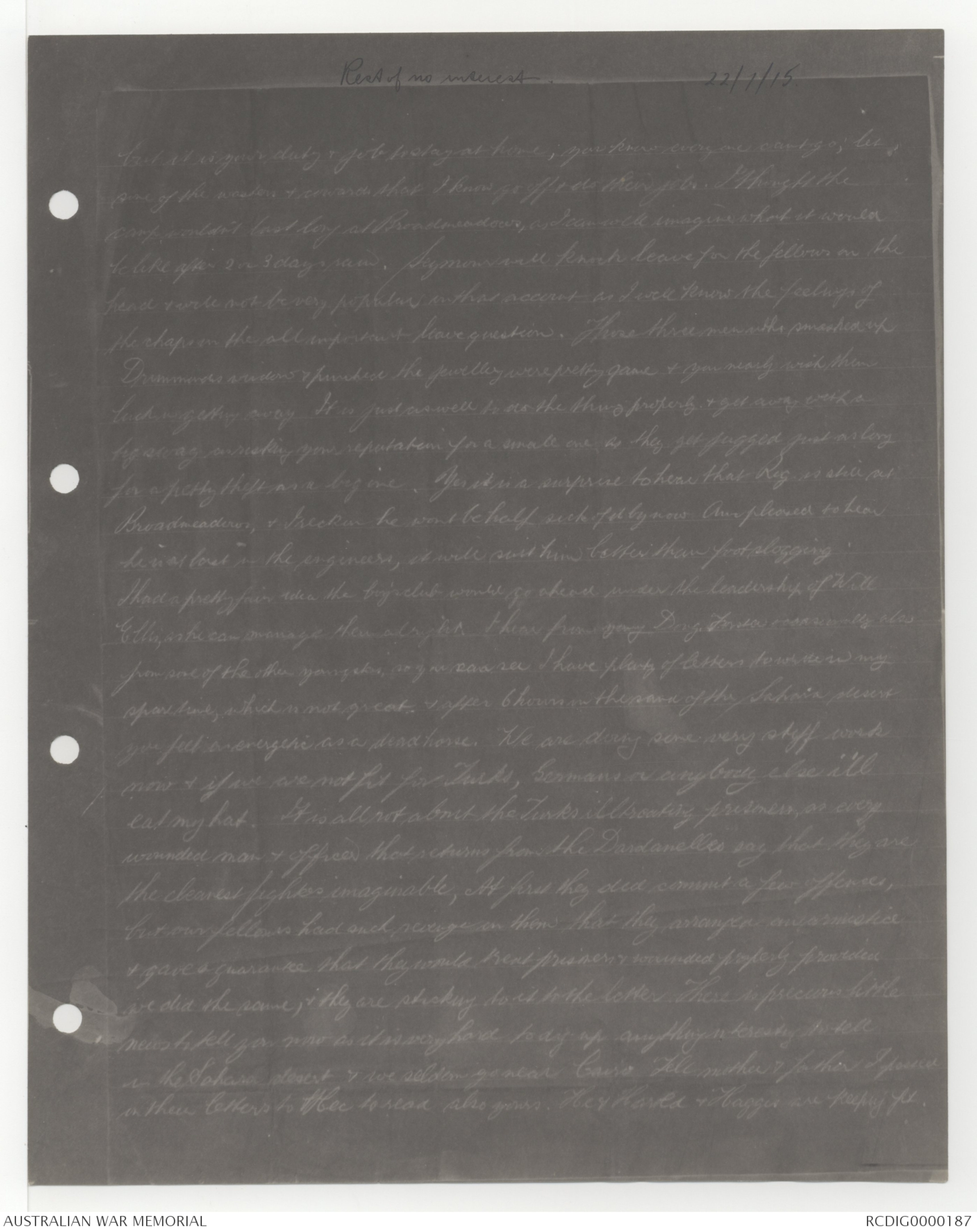 despathing mails from Egypt to Turkey. The spirit of the Australians