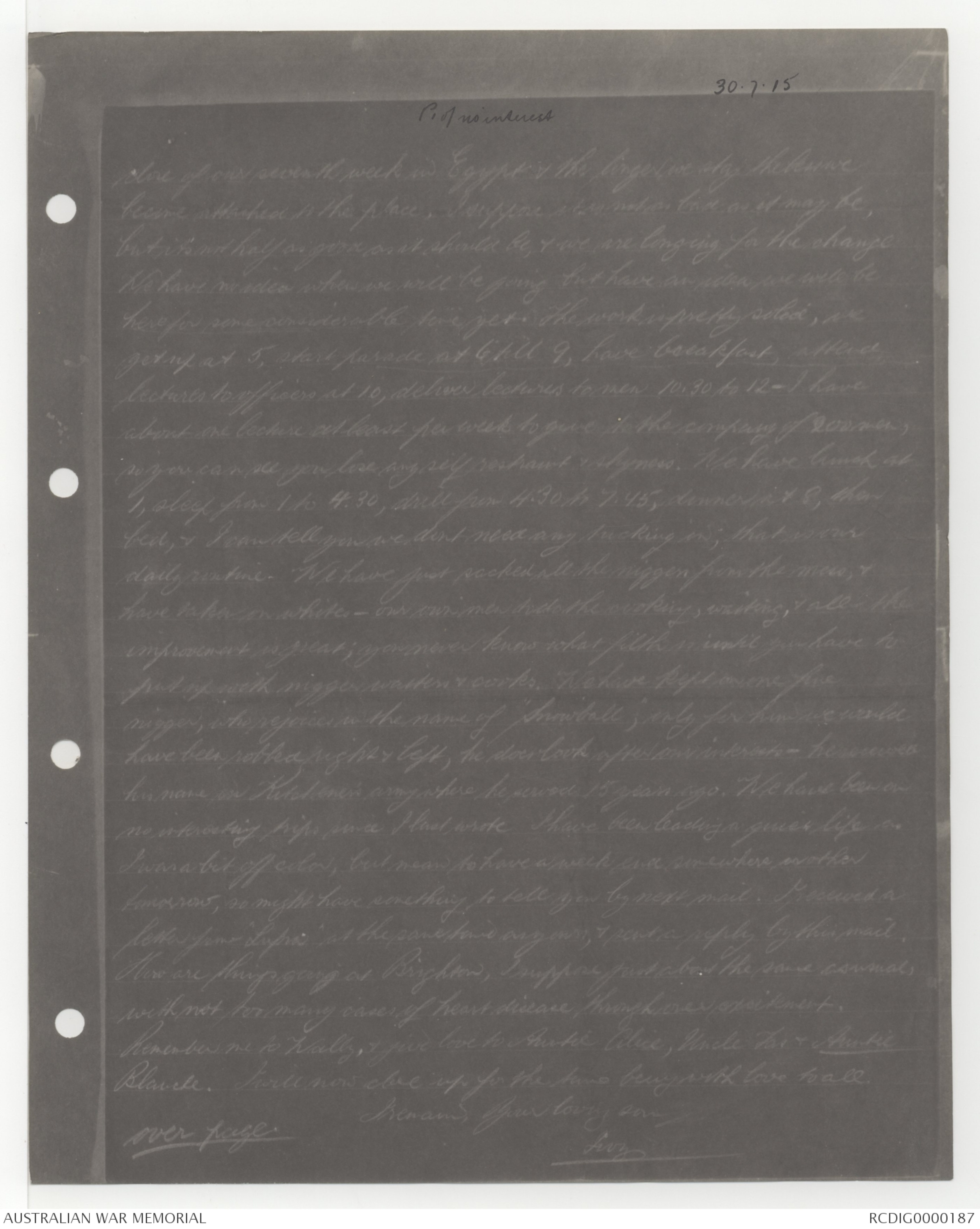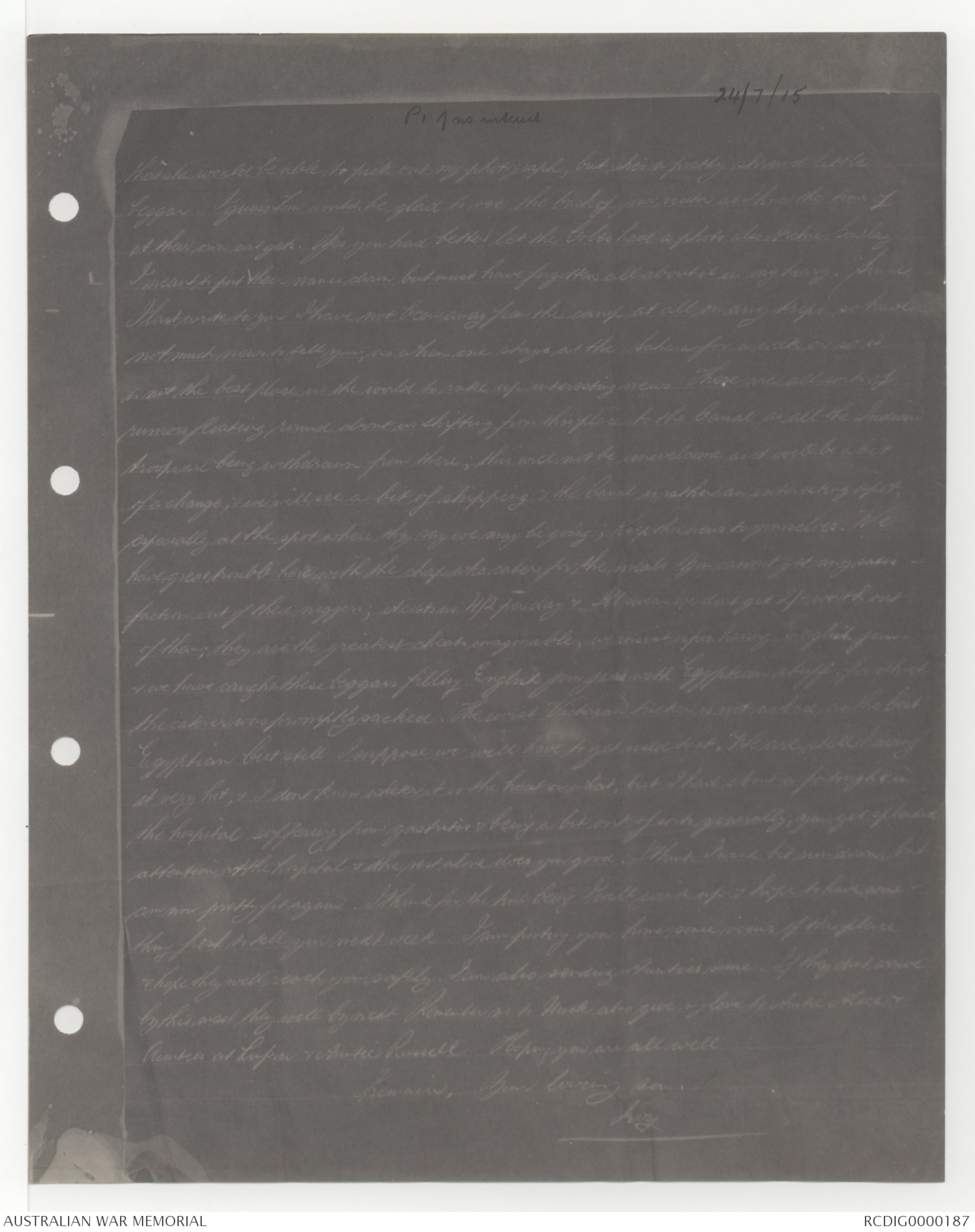 in the Sahara desert & we seldom go near Cairo. Tell mother & father I posted
