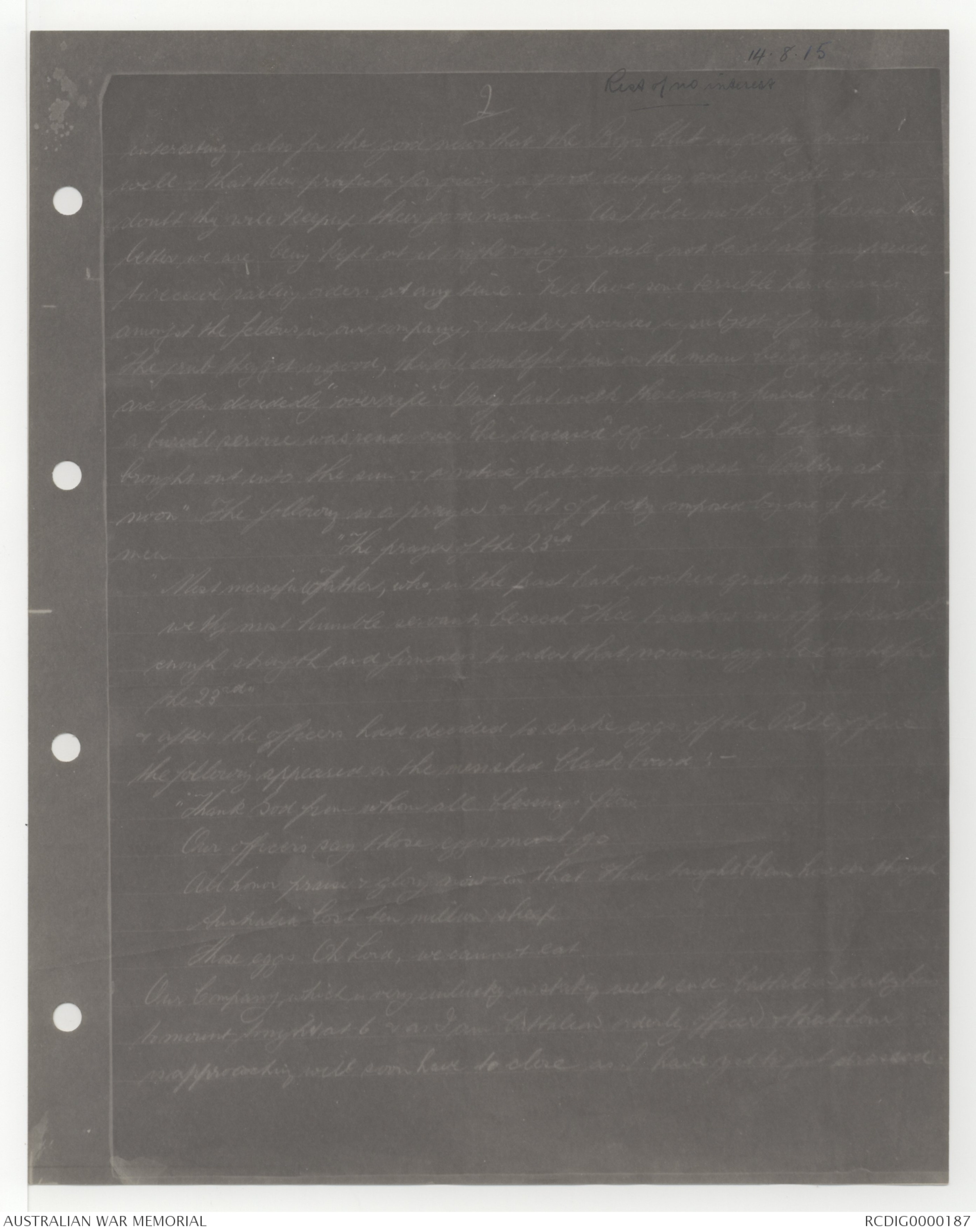 I last wrote to you I have not been away form the camp at all on any trips so have