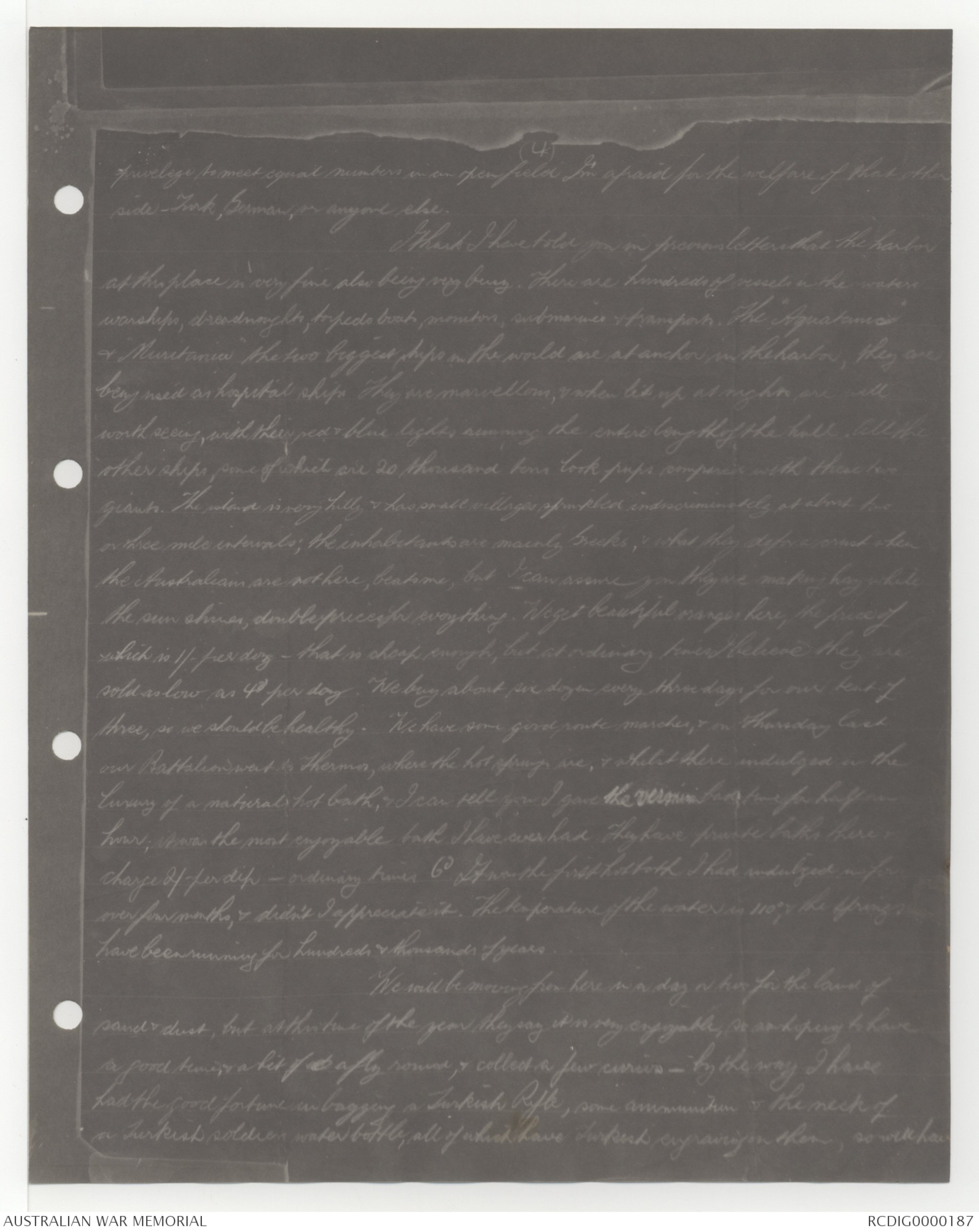 charge 2/- per dip - ordinary times 6d. It was the first hot bath I had indulged in for