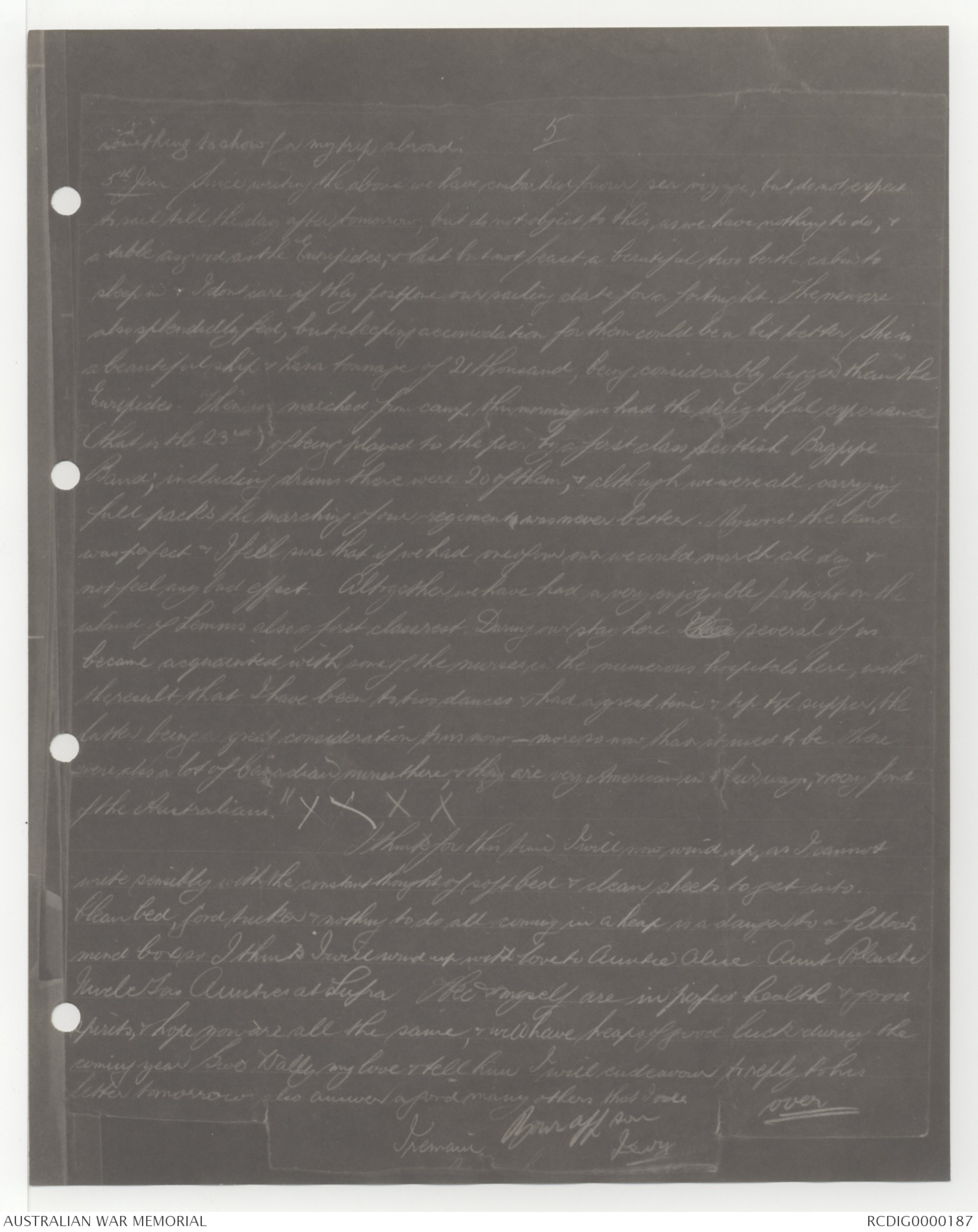 5th Jan Since writing the above we have embarked for our sea voyage, but do not expect