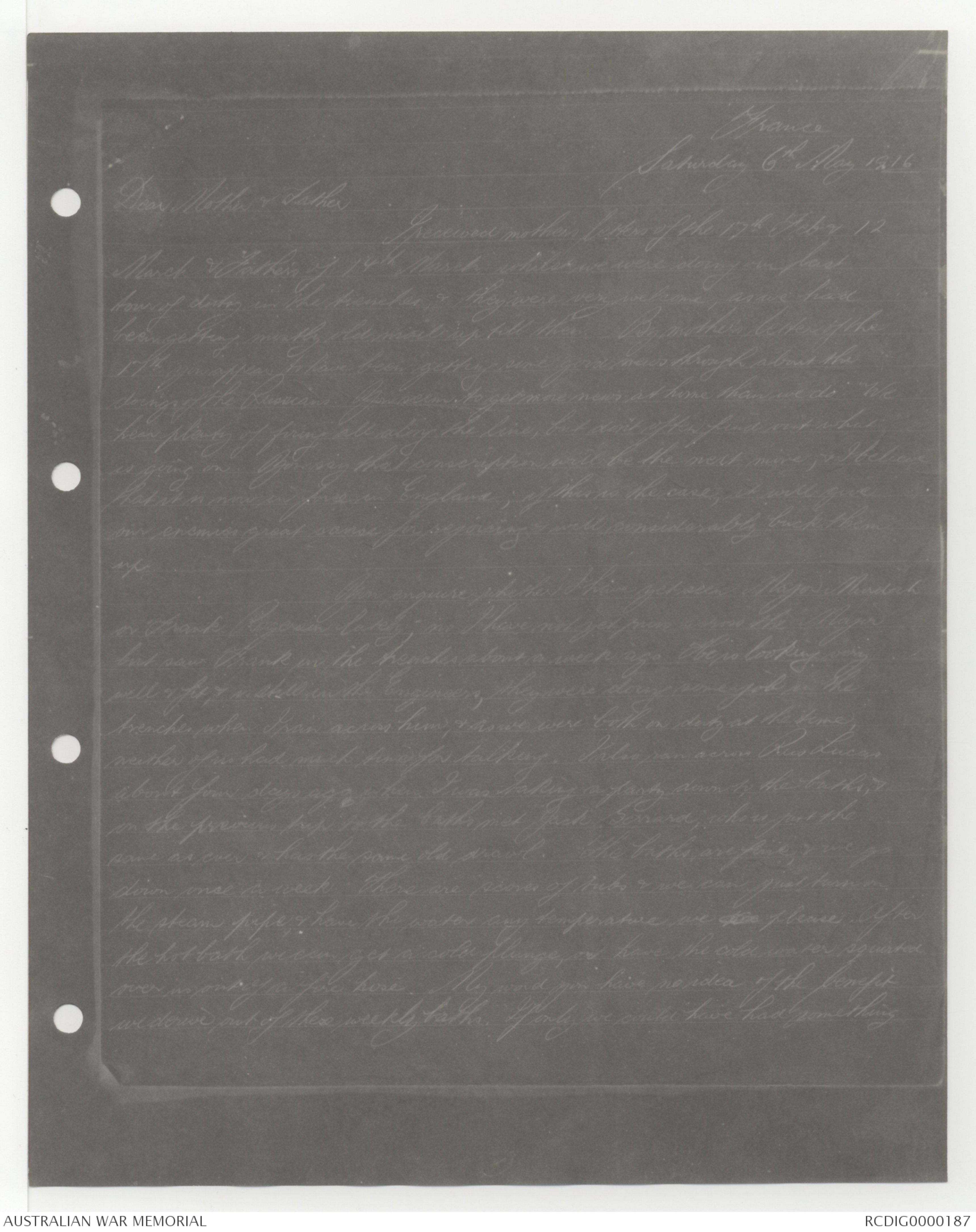 letter with anything interesting as we do not move out of our billeting
