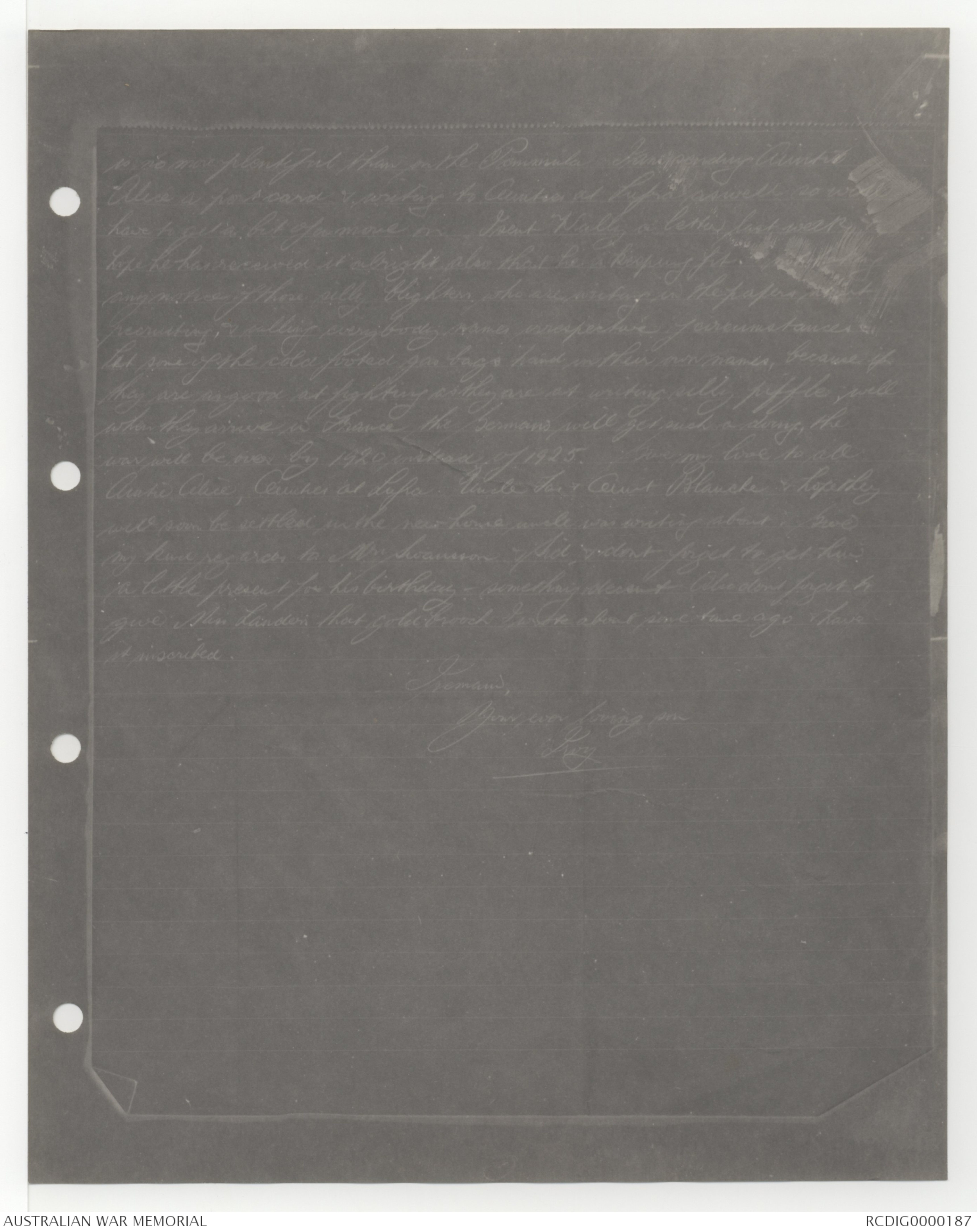 war will be over by 11920 instead of 1925. Give my love to all