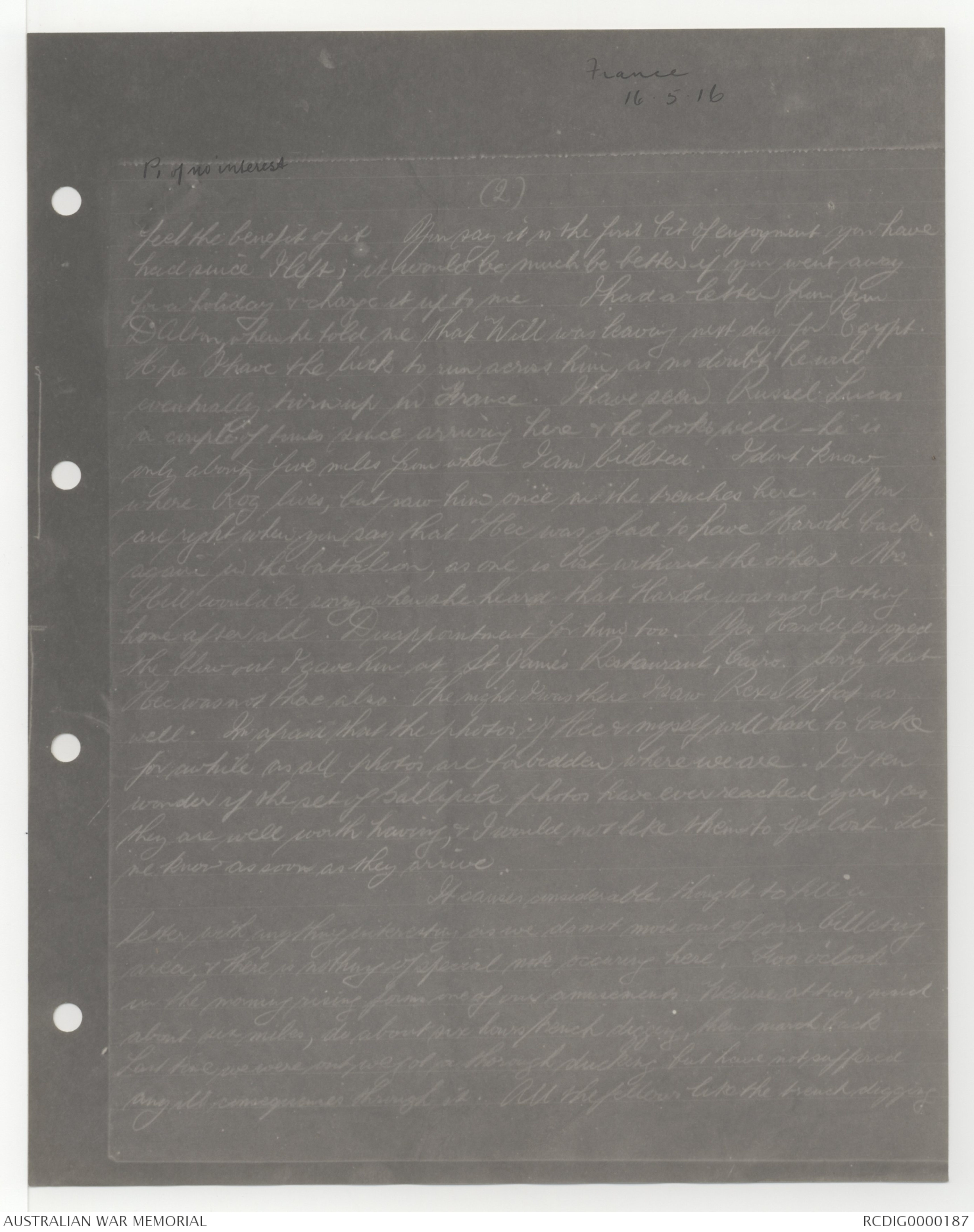 Letters from Irving Russell Flett to his Family, 1915-1916 - Part 8