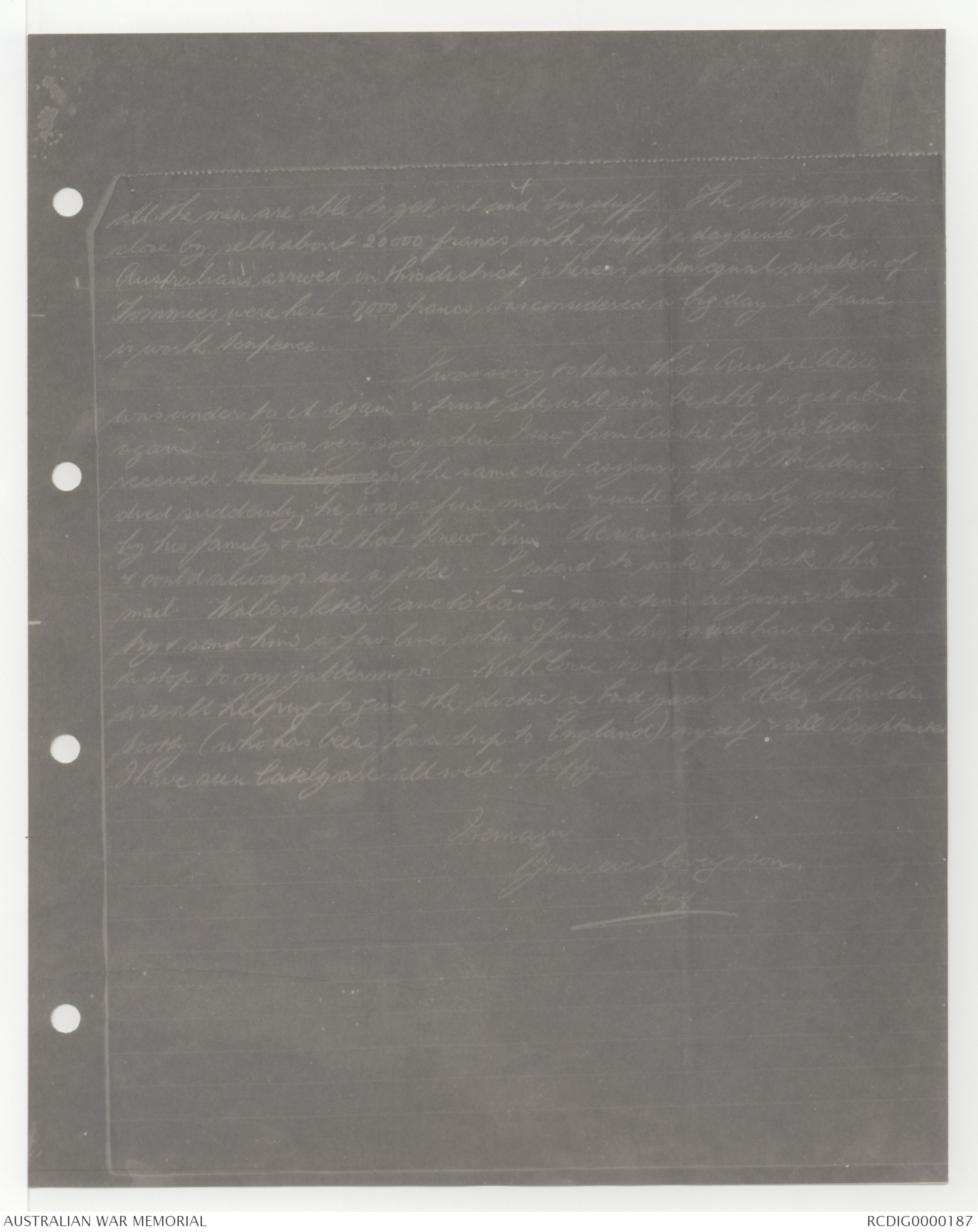 to Auntie Alice today, & intend sending Wally a