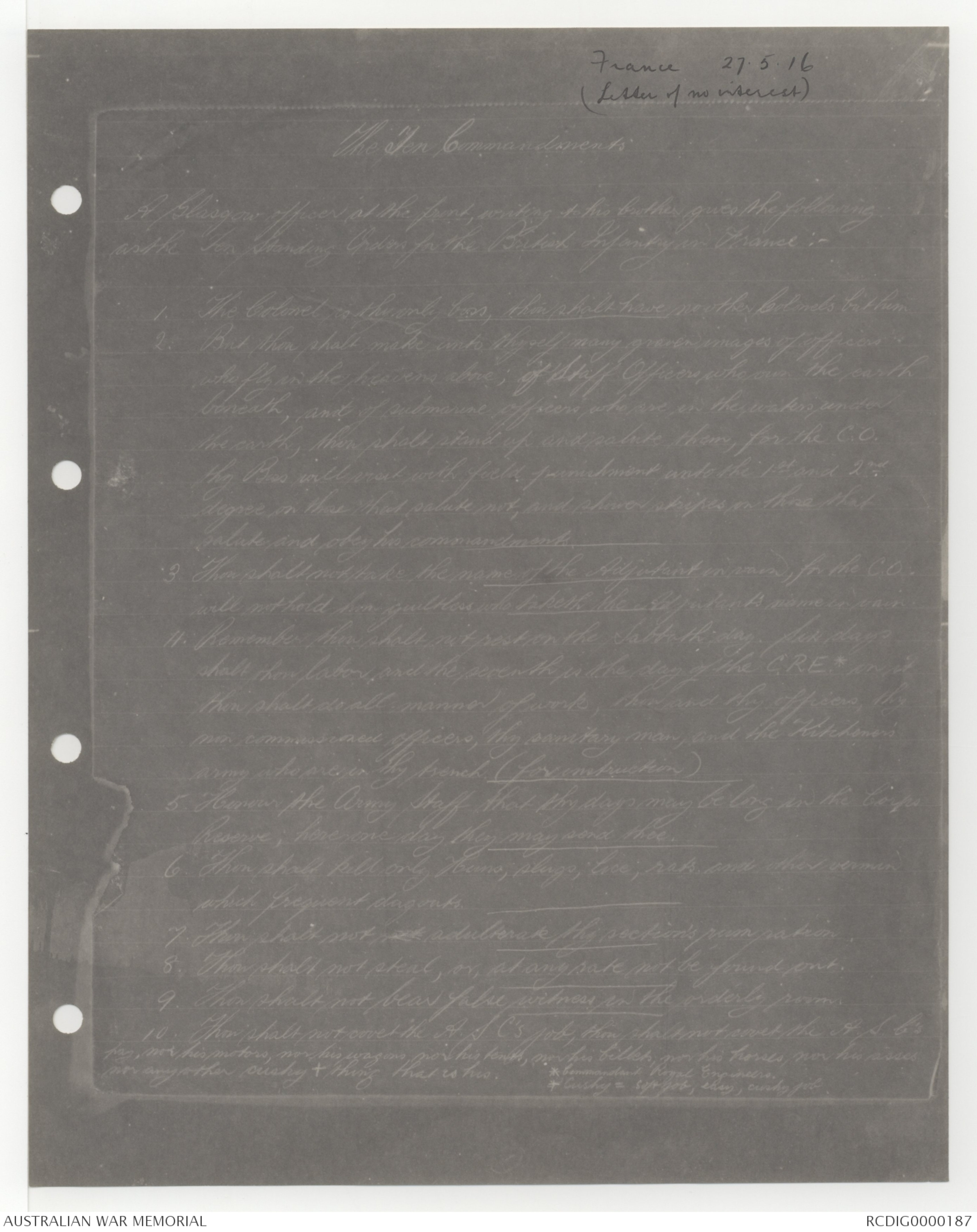 Thou shalt not take the name of the Adjutant in vain, for the C.O.