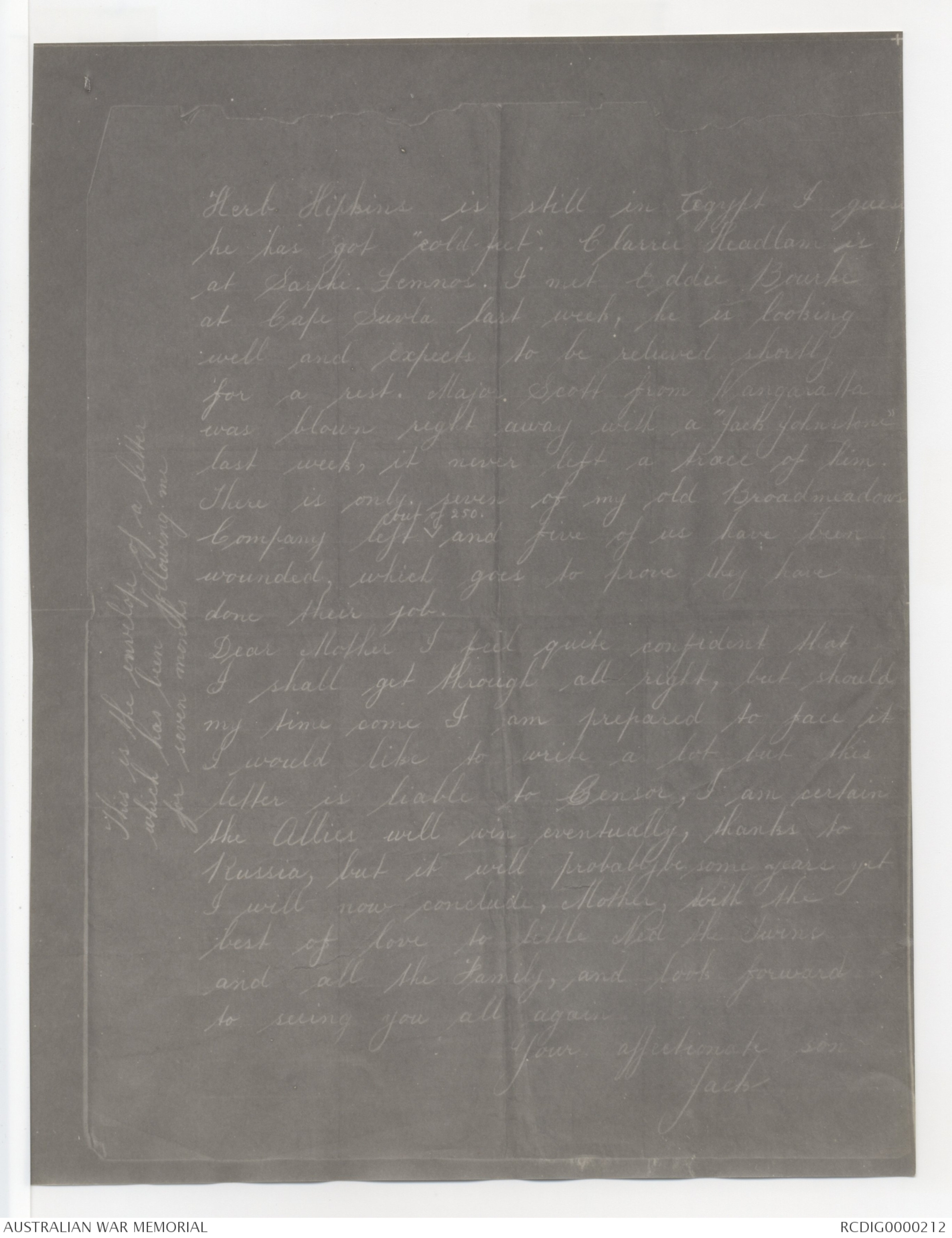 be under German rule. Dear Mother give my